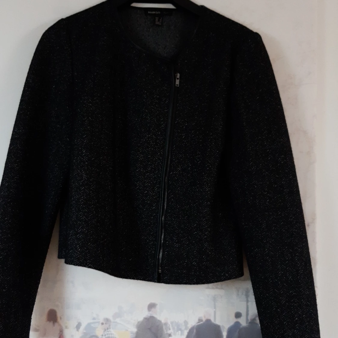 Kort jacka från Mango, melerad svart/grå. Storlek S, knappt använd.