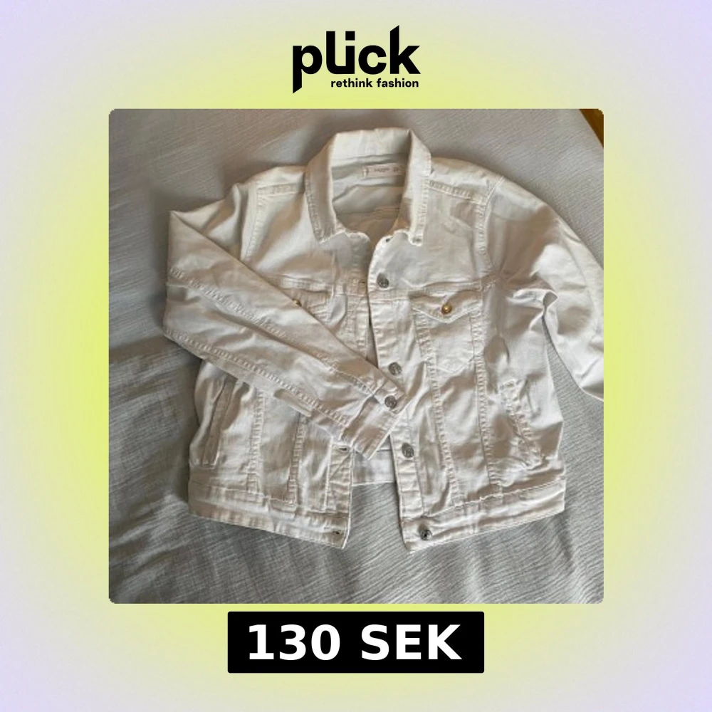 Säljer en stilren vit jeansjacka från Mango. Jackan har knappar framtill och två bröstfickor med knappdetaljer. Perfekt för vår och sommar! Står storlek L men den passar som en S