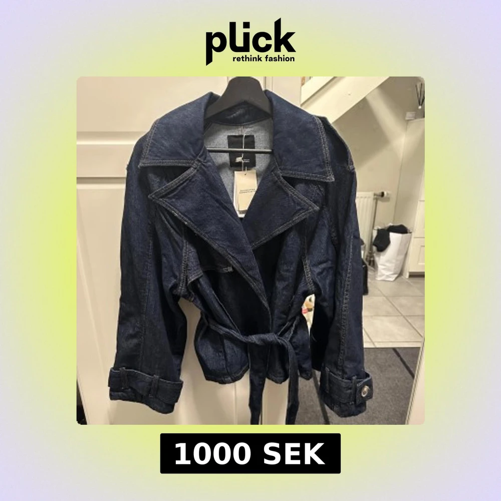 Snygg mörkblå trenchcoat i jeansmaterial från Mango. Helt slutsåld, storlek XS, med lapparna kvar