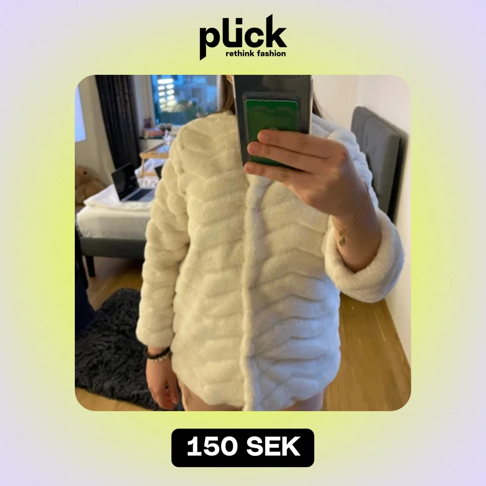 Vit pälsjacka från mango. Storlek 152 (barnstorlek) men skulle säga att den passar en XS men den blir lite kort i armarna, men det är snyggt ändå. En knapp är lite trasig som man ser i sista bilden. Tryck gärna på Köp Nu knappen!