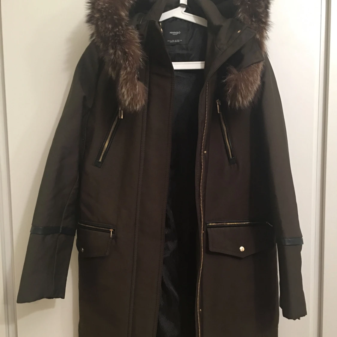 Grön jacka från MANGO. Nyskick, äkta pälskrage på mössan medföljer.