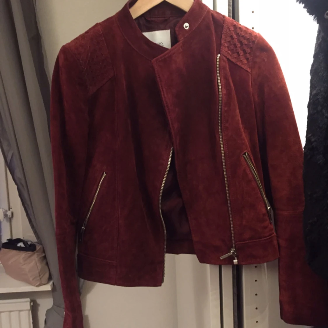 Mockajacka från Mango. Färgen är vinröd. Den är i gott skick och passar perfekt till hösten.