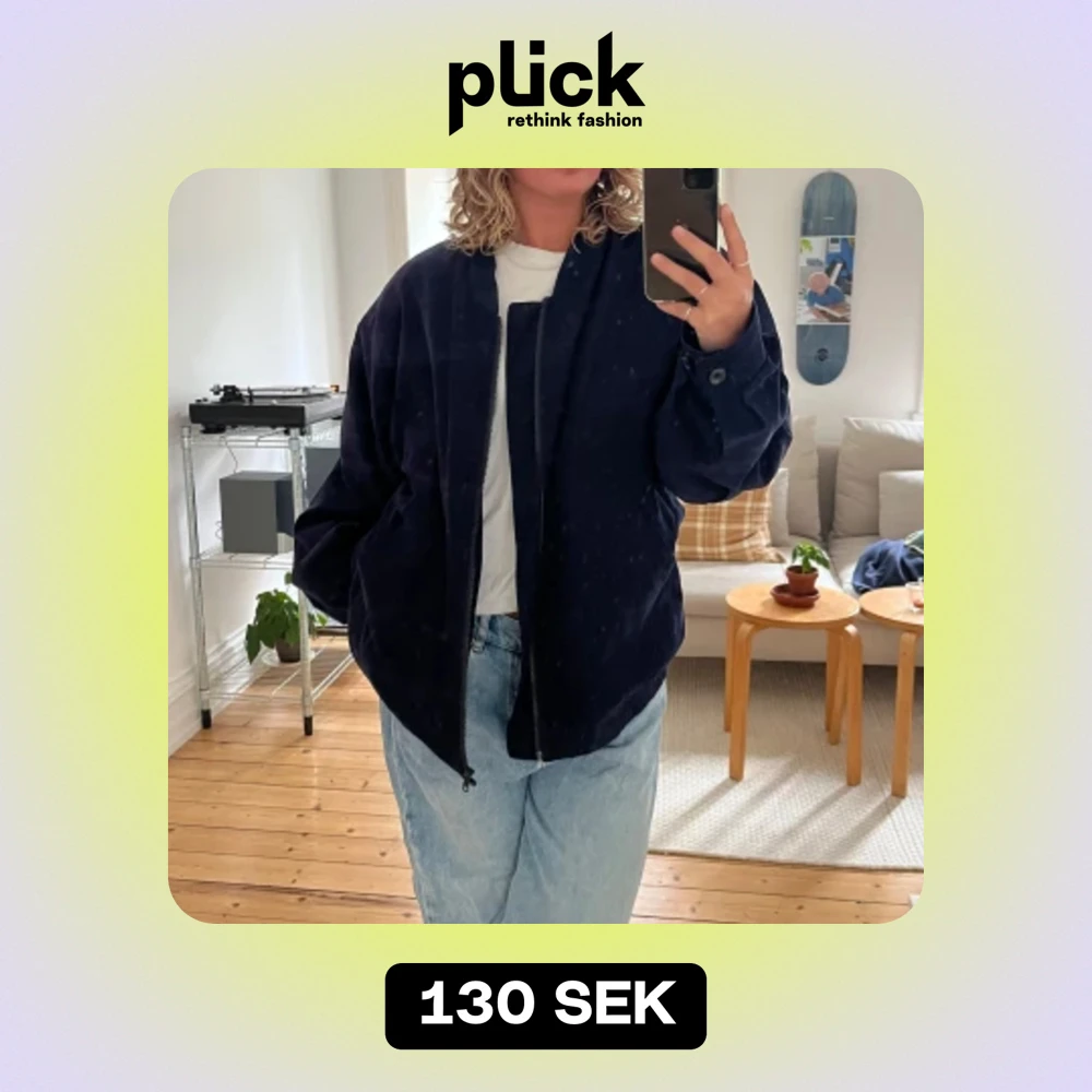 Bomber jacka fit, lite overzized. Strl Medium. Marin blå, material mocka.