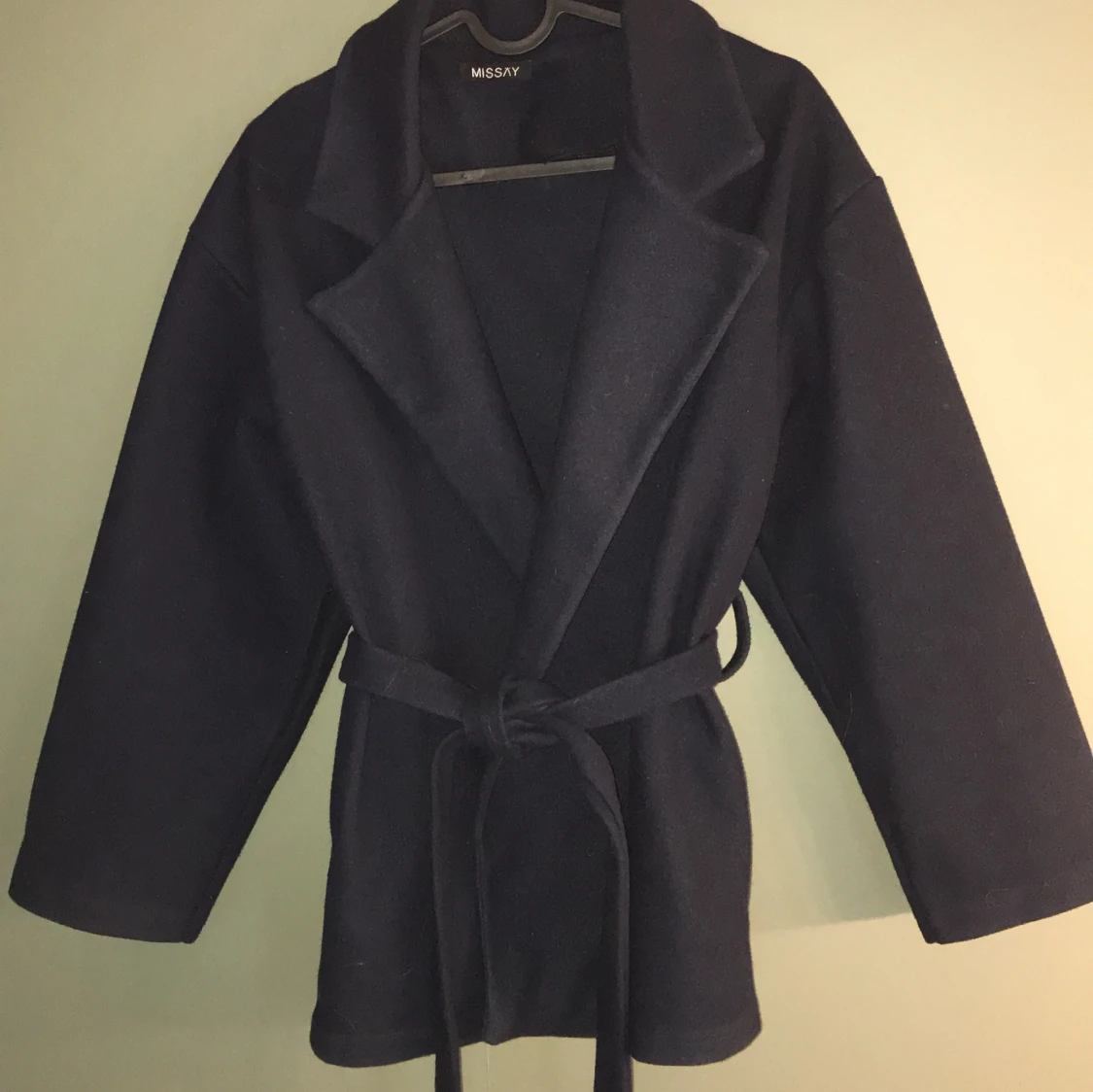 Denna kappan är i helt nyskick den har inga tecken på användning och är perfekt för höst och vinter. Kappan är marinblå och kommer från Missäy. Köptes för 379kr. Snöret kommer såklart med!