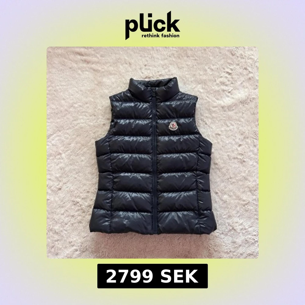 Snygg marinblå dunväst från Moncler med quiltad design och hög krage. Västen har dragkedja framtill och ett broderat Moncler-märke på bröstet. Skick: 8/10 (endast använd fåtal gånger) Stolek: 14Y/164 (passar dig som använder XS vandligtvis)