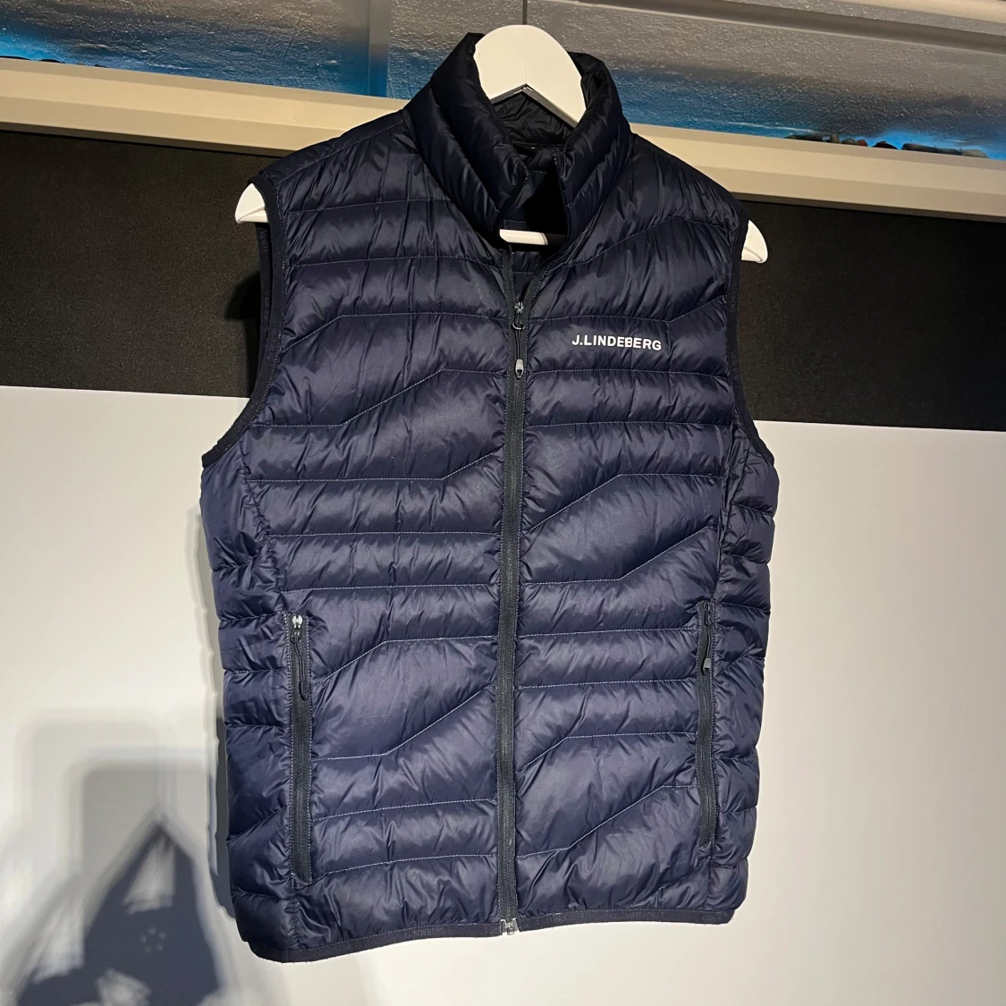 Snygg marinblå dunväst från J.Lindeberg med trasig dragkedja framtill som lätt och billigt går att laga för 10kr! Har bara inte orkat då den ändå var för liten. I övrigt mycket fint skick utan defekter. Modell cliff light down vest som kostar 2000kr ny. Storlek S