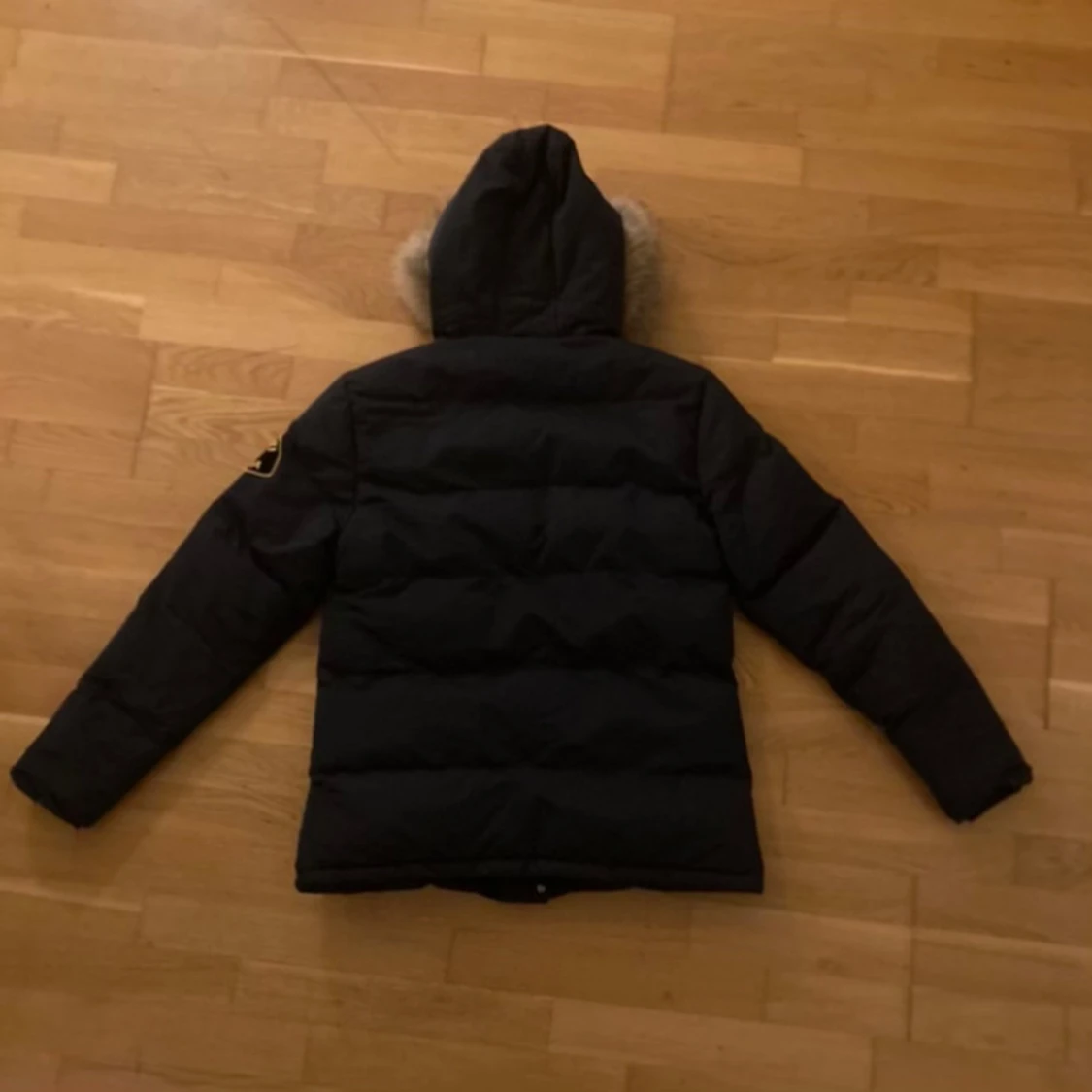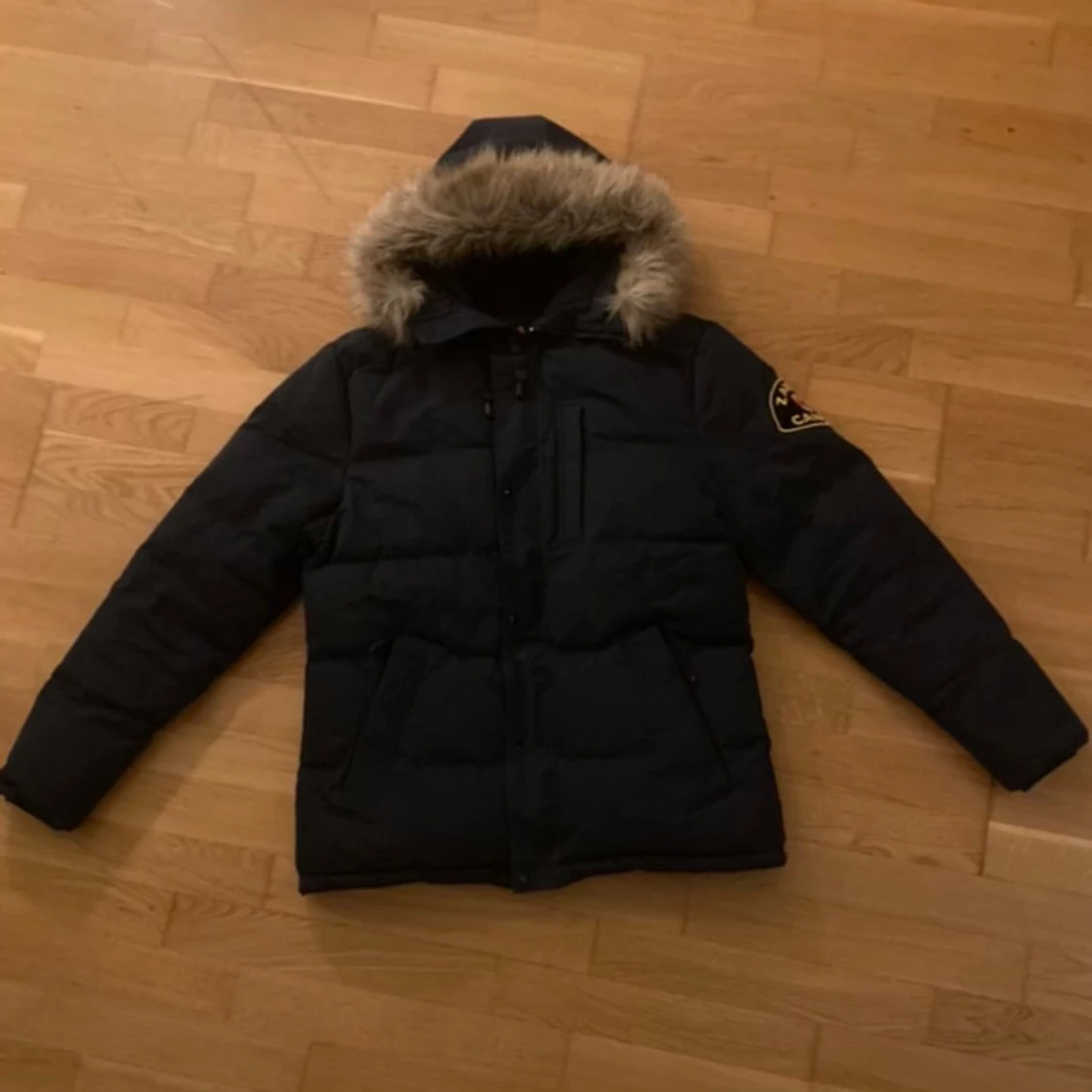 Säljer en svart vinterjacka från Zavetti Canada med pälskantad huva. Jackan har en broderad logga på ärmen och dragkedja framtill. Nypris: 1100 kr, mitt pris: 399kr. Skriv om du har fler frågor eller vill se fler bilder💕(pris går att diskutera)