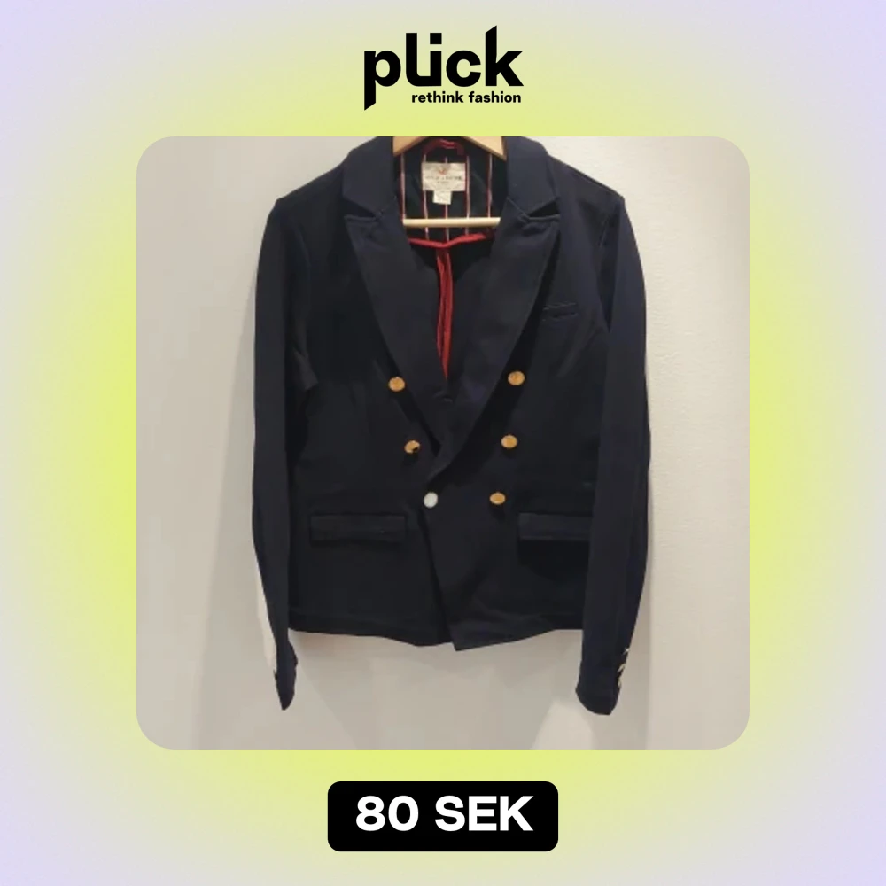 Säljer en stilren marinblå kavaj från Holly & Whyte by Lindex. Kavajen har en klassisk design med dubbla knapprader i guld och en snygg krage. Perfekt för både vardag och fest! 🖤