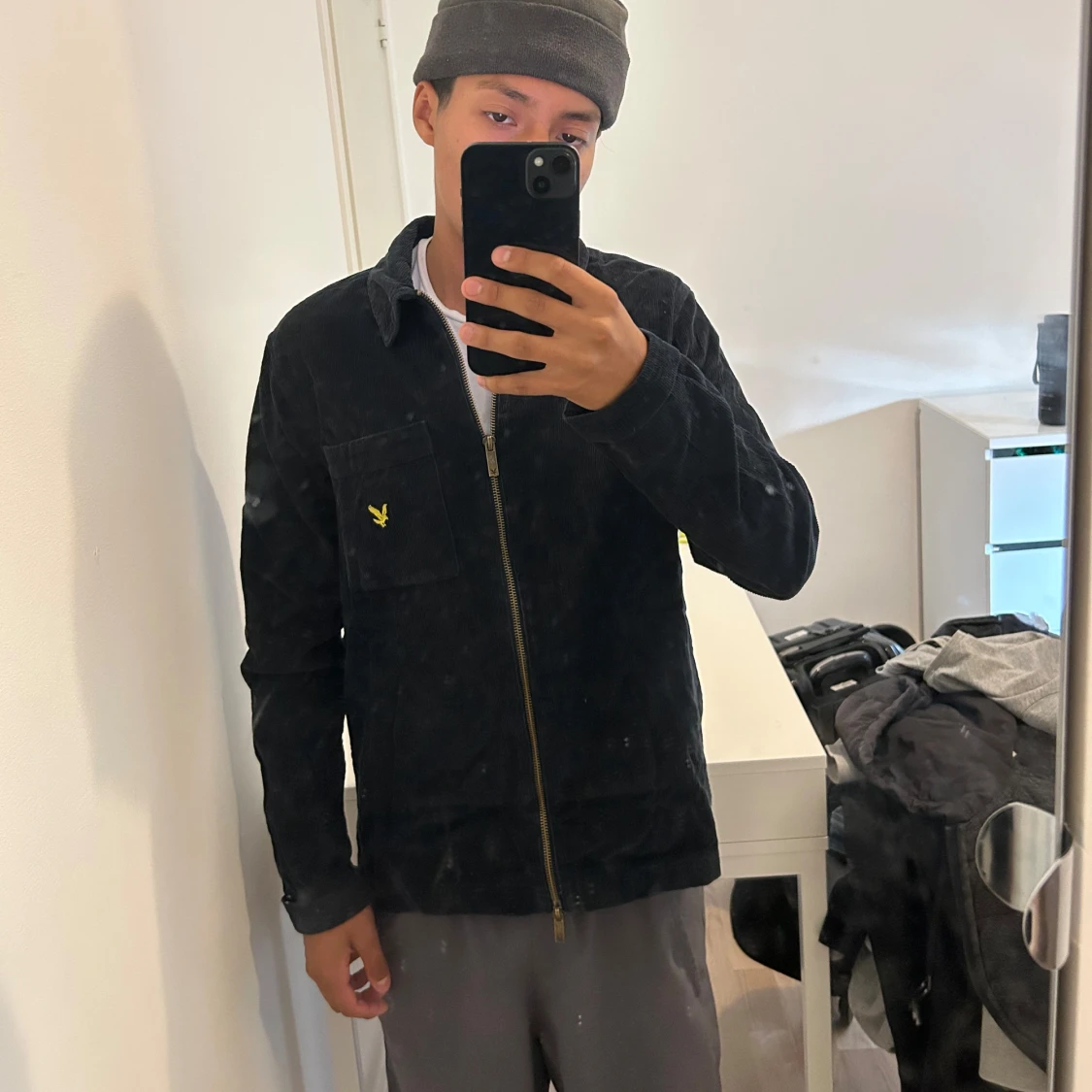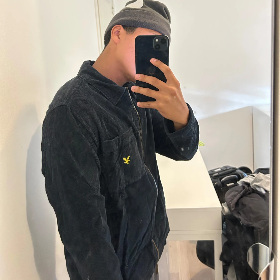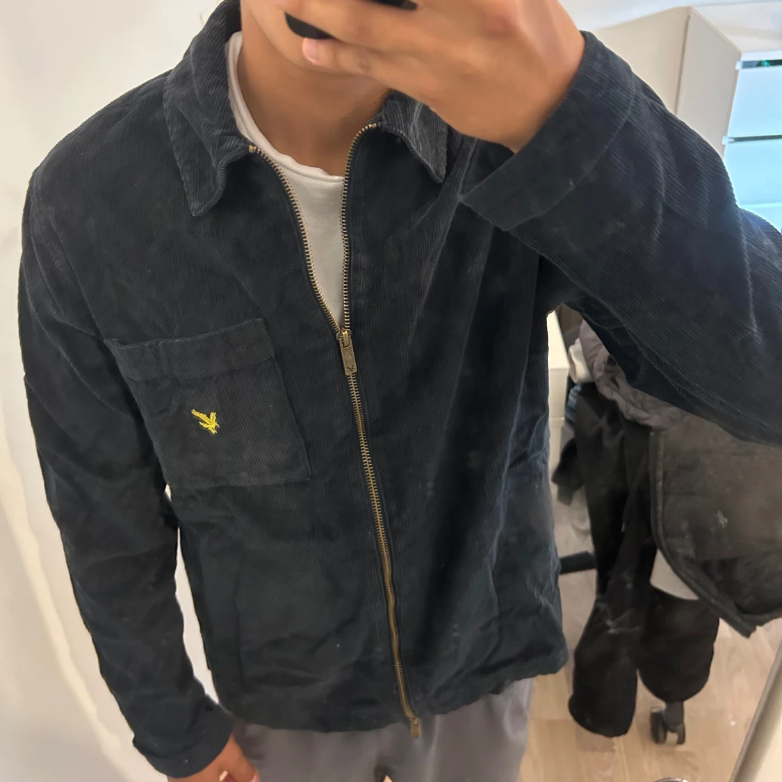 Marinblå manchester overshirt från Lyle & Scott med gul broderad logga på bröstfickan. Jackan har dragkedja framtill, klassisk krage och raka ärmar. Perfekt för lager-på-lager och snygg till jeans. Använt endast 5 gånger max och inga skador, säljer då den inte kommer till användning