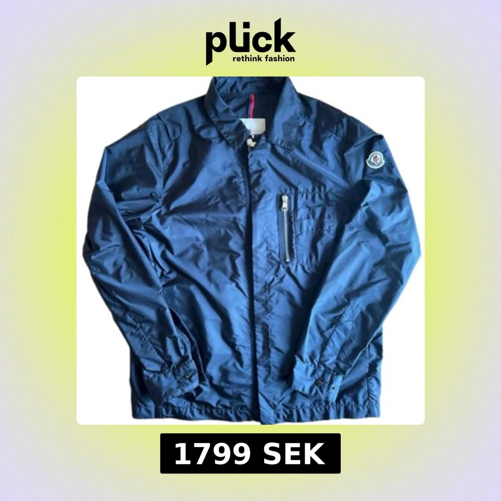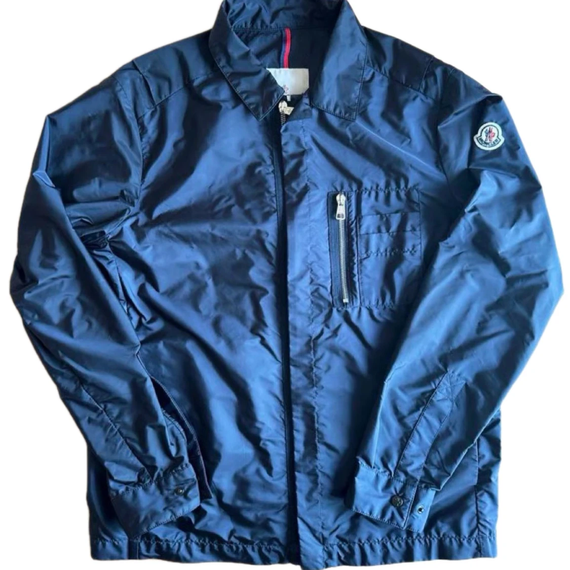 Snygg marinblå vindjacka från Moncler med klassisk krage, dragkedja framtill och en bröstficka med vit dragkedja. Jackan har Moncler-logga på vänster ärm och justerbara muddar. Perfekt för dig som gillar stilren och sportig look. Storlek 2 vilket motsvarar S/M.