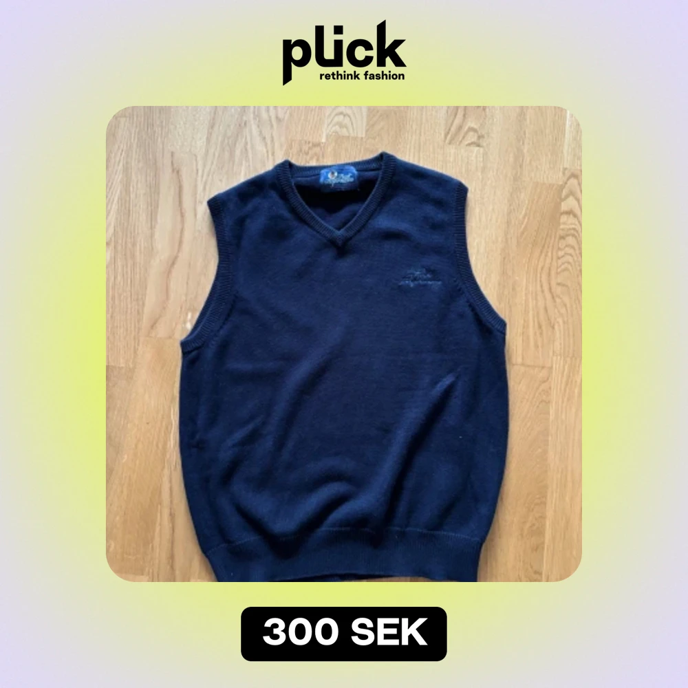 Säljer en stilren mariblå stickad väst från Peak Performance med deras gamla logga