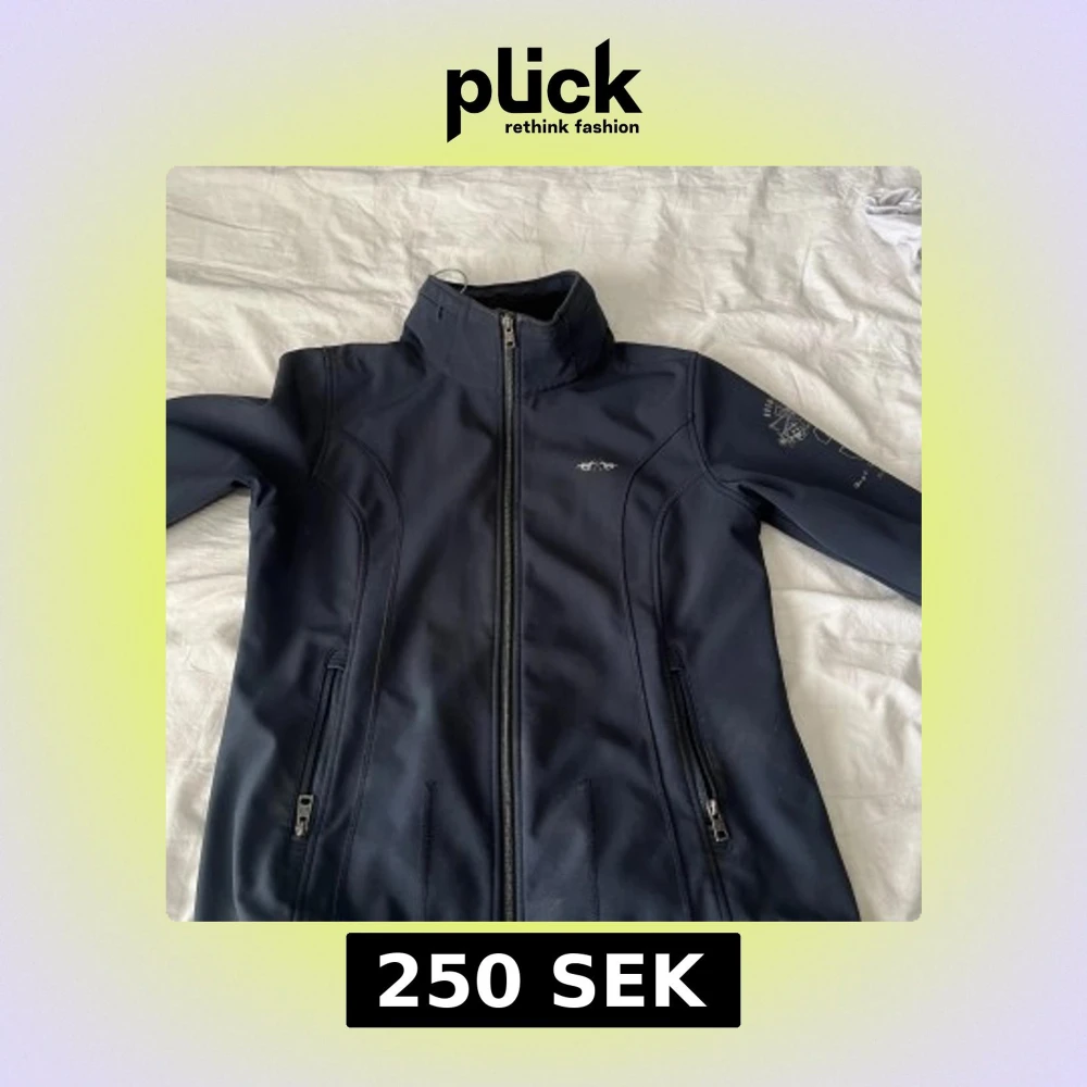 Snygg marinblå softshelljacka från HV Polo i storlek XL. Jackan har dragkedja framtill, två fickor med dragkedja och broderade detaljer på ärmen. Perfekt för dig som gillar ridning och vill ha en sportig look. Liten defekt i sista bilden (vet ej om det går bort)