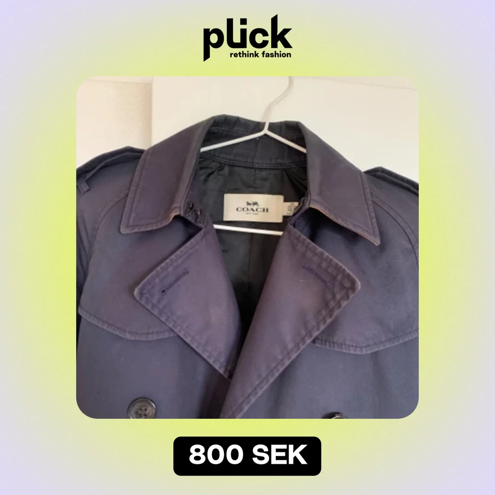 Marinblå kort trenchcoat från Coach! Storlek XXS, men passar även XS och förmodligen en liten S!