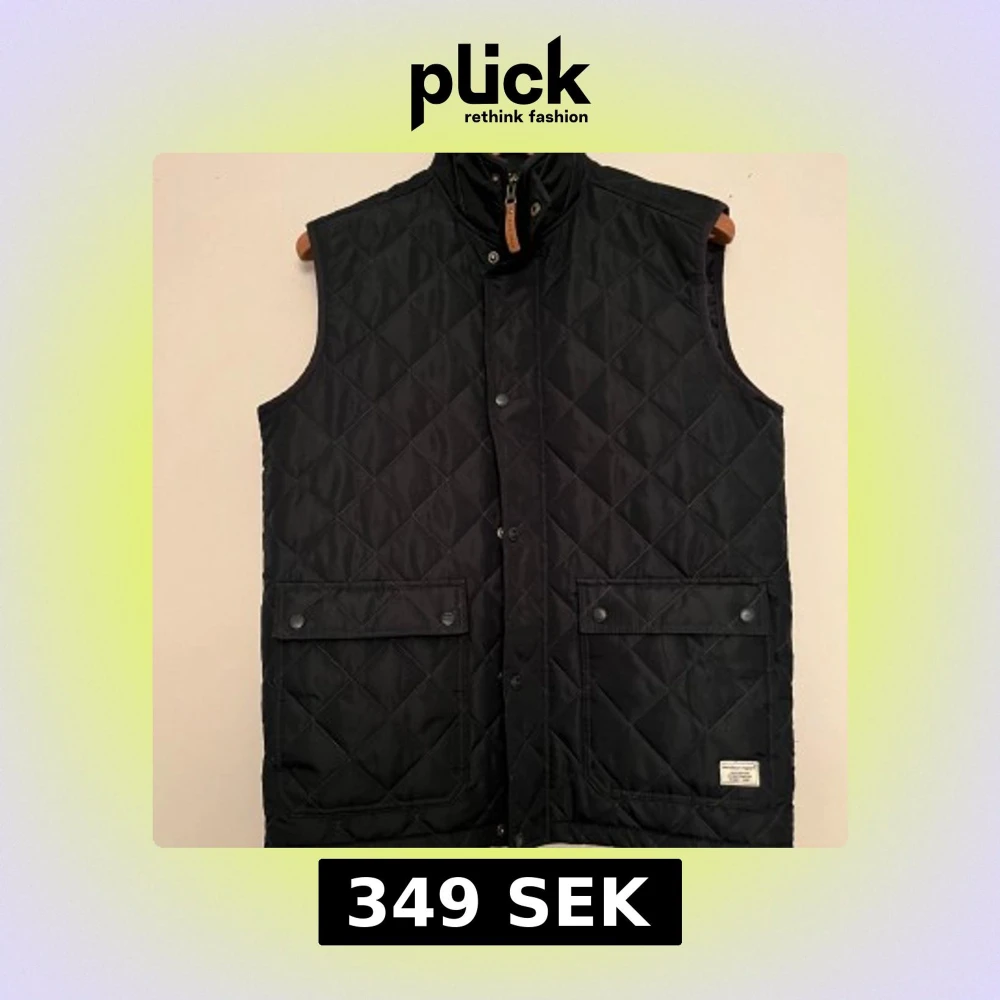 Säljer en mörkblå quiltad väst från Weather Report. Västen har en hög krage och knäppning med tryckknappar framtill och även en dragkedja. Västen är helt oanvänd och har därför inga defekter. Ny pris 1000:-