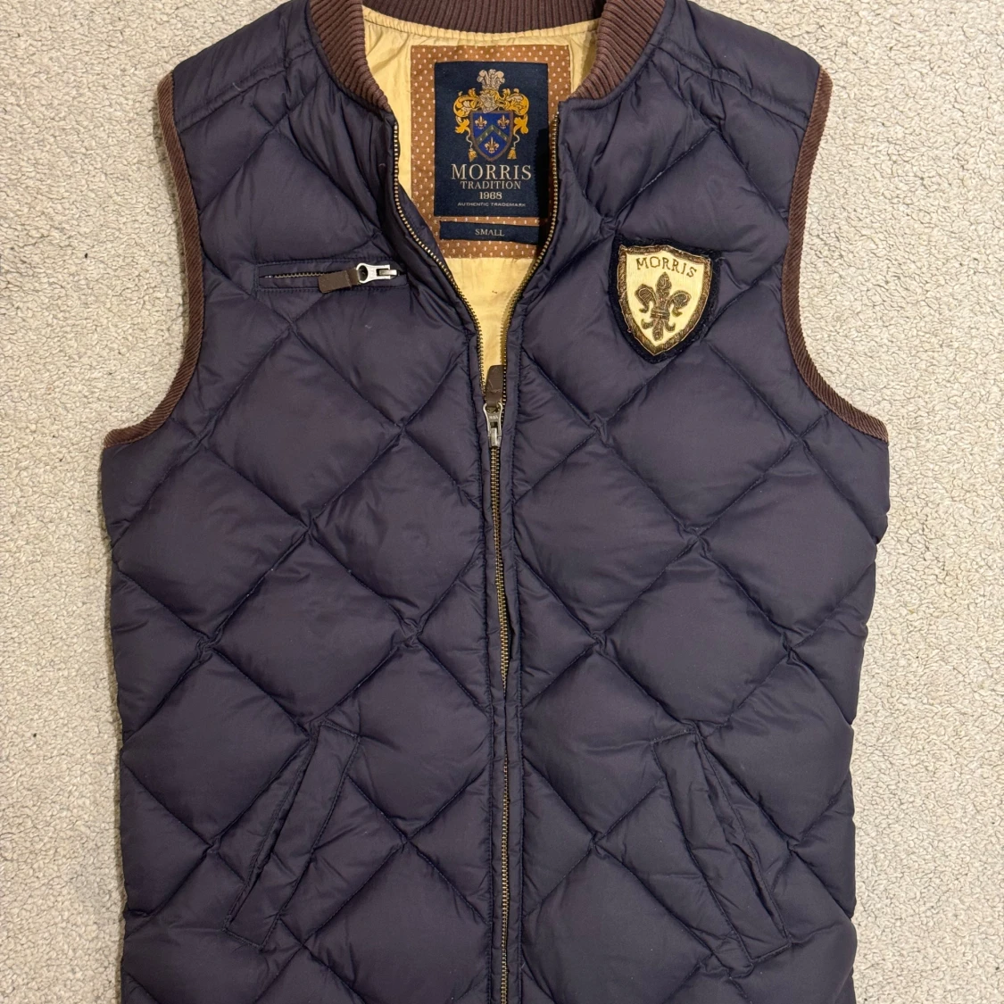 Storlek: S Färg: Mörkblå Skick: Mycket bra skick Small-taggen är halvt lös men det är en enkel fix som tar någon minut med någon som kan sy. Men annars inga synliga defekter och i perfekt skick. Se sista bild.