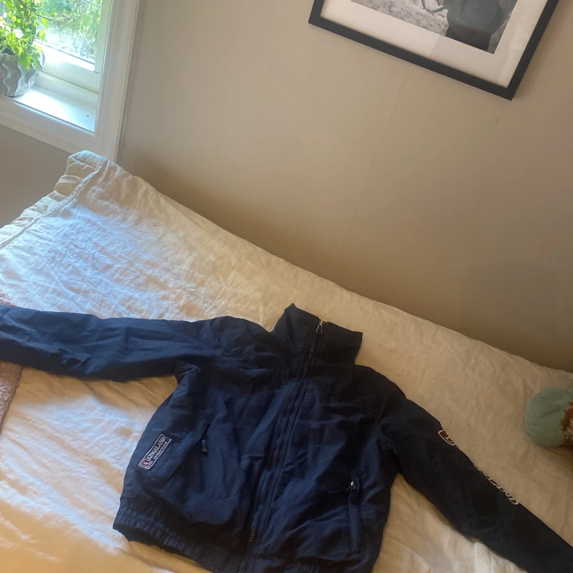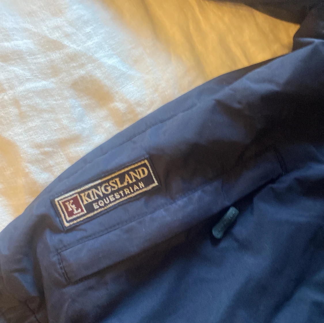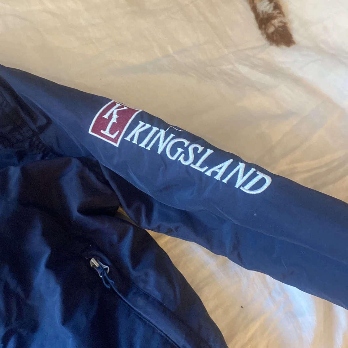 Snygg marinblå vindjacka från Kingsland med broderad logga på ärmen och bröstet. Jackan har hög krage, dragkedja framtill och två fickor med dragkedja. Perfekt för dig som gillar ridning och vill ha en sportig look.