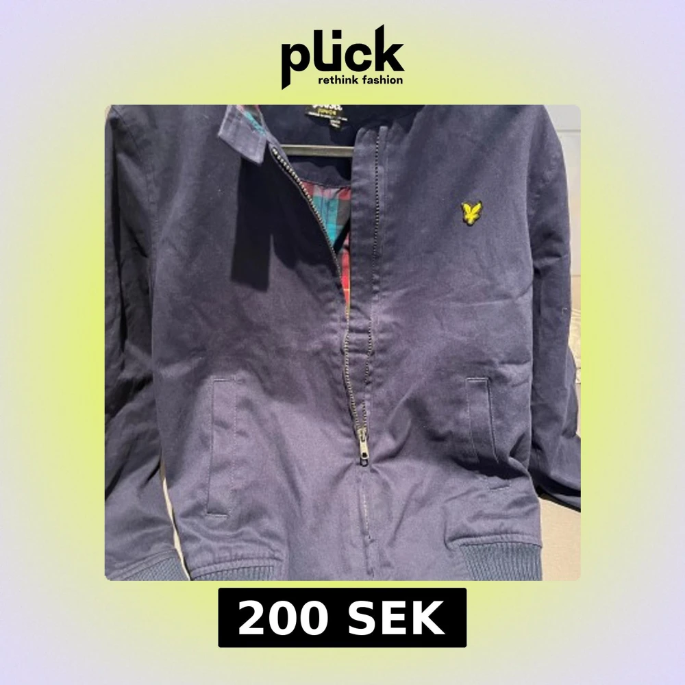 Snygg marinblå vindjacka från Lyle & Scott med dragkedja framtill och klassisk gul logga på bröstet. Jackan har ribbade muddar och fickor på sidorna samt rutigt innerfoder för extra stil. Storlek 12-13 år. 200kr.