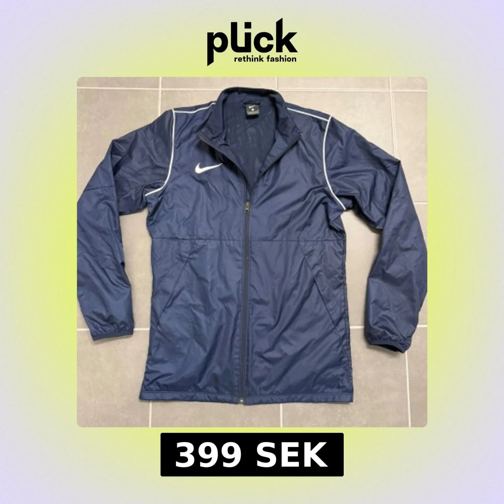 Snygg marinblå vindjacka från Nike med vit piping längs axlarna och klassisk Swoosh-logga på bröstet. Jackan har hel dragkedja, ståkrage och två sidofickor. Tillverkad i lätt polyester med meshfoder för extra komfort. Perfekt för dig som gillar sportig stil.