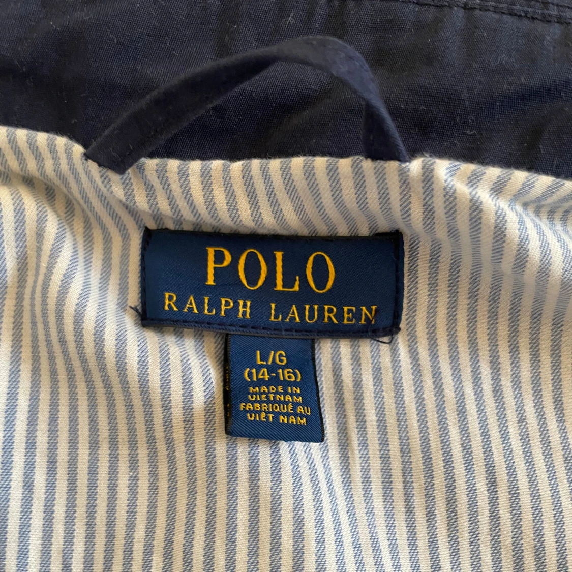Klassisk marinblå vindjacka från Ralph Lauren. Den har inga skador och passar perfekt nu som en tunnare jack till hösten. Den är i riktgt bra skick och har inga skador. 😊🤩