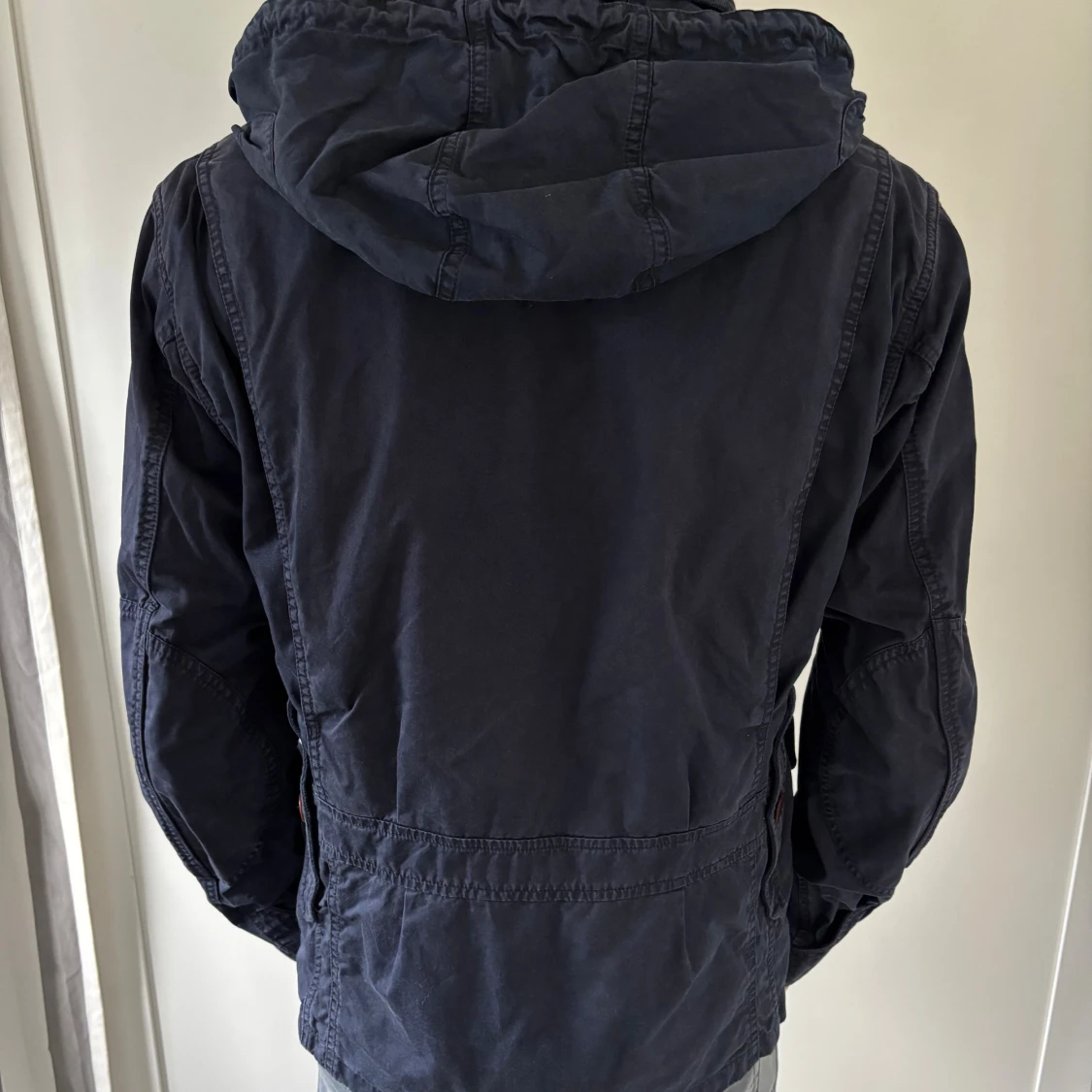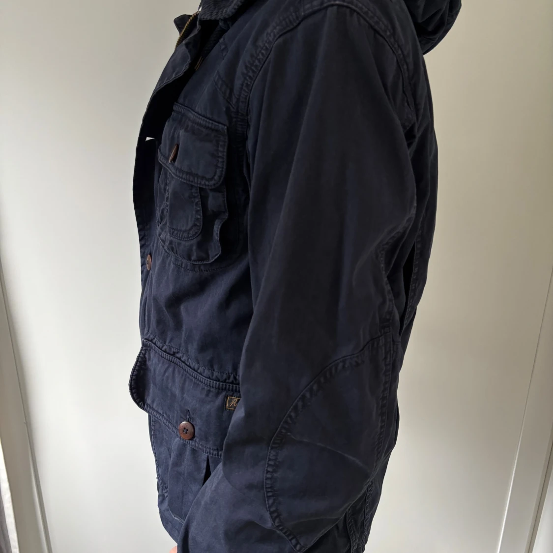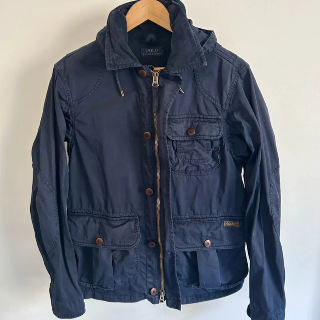 Snygg marinblå vindjacka från Polo Ralph Lauren med huva, stora fickor med lock och knappar framtill. Jackan har en klassisk look med dragsko i huvan och är tillverkad i bomull. Perfekt för dig som gillar stilren och funktionell design.
