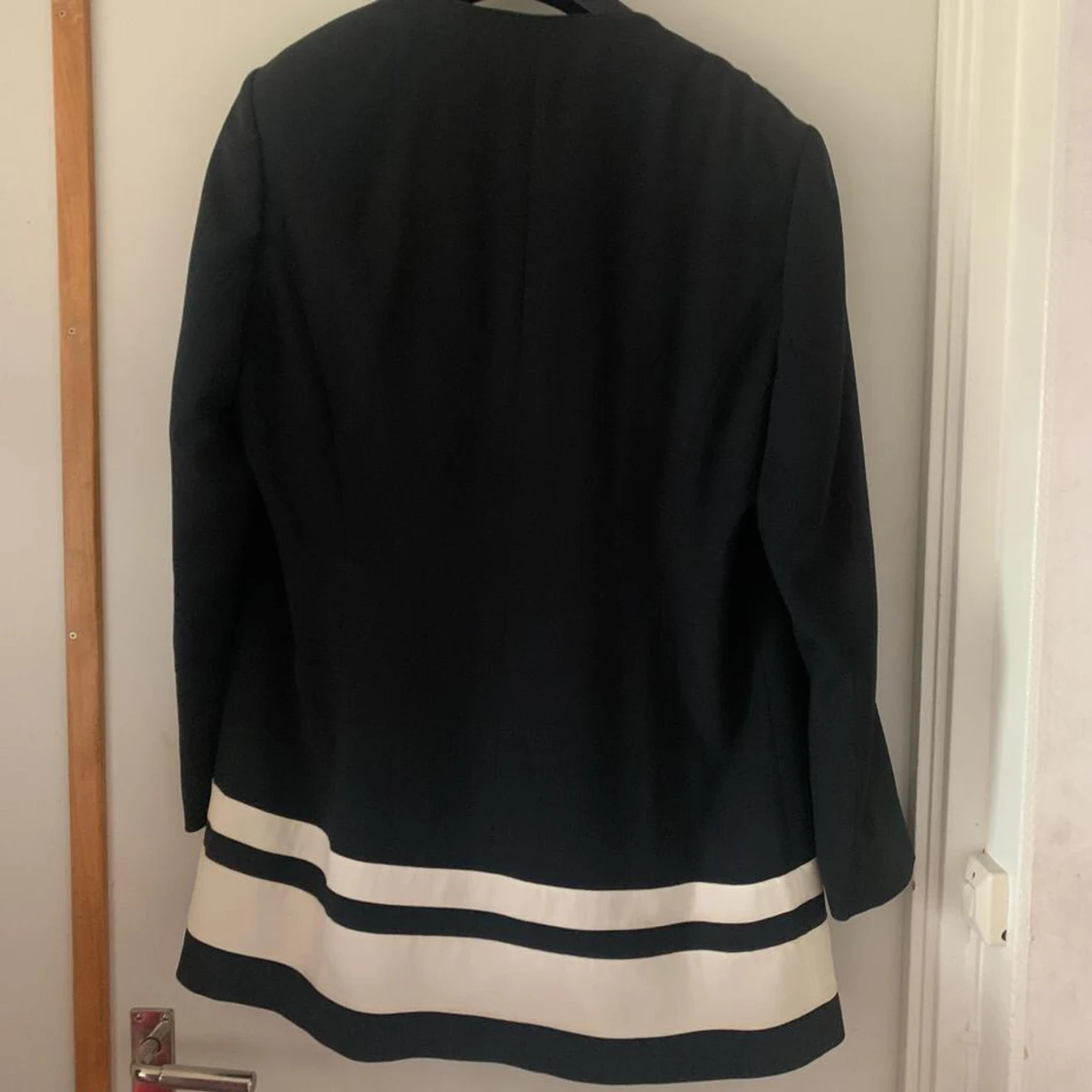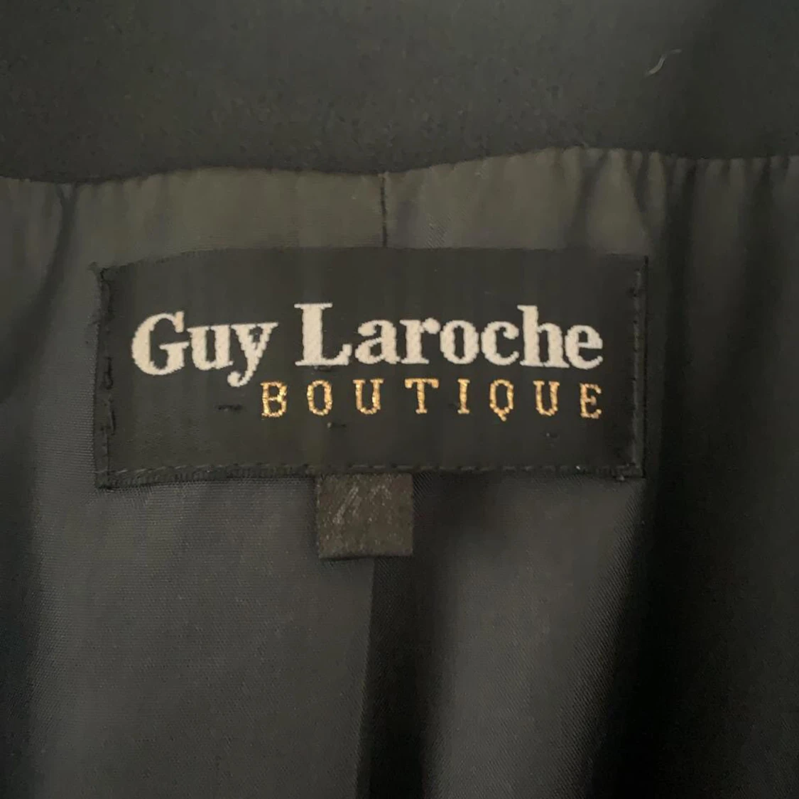Elegant svart kavaj från Guy Laroche med vita ränder längst ner. Kavajen har långa ärmar och röda knappar som ger en snygg kontrast. Perfekt för en stilren look.