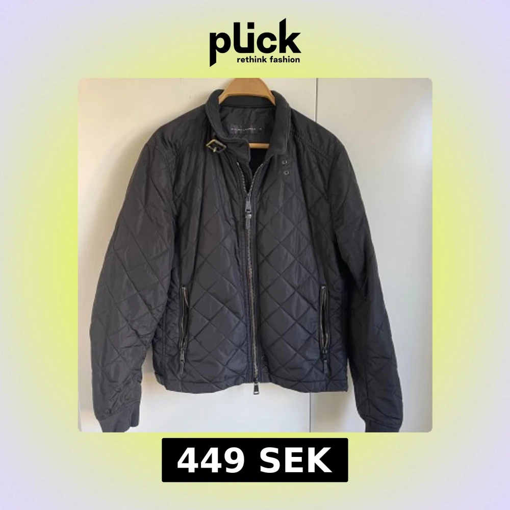 Quiltad svart jacka från Ralph Lauren med ribbade muddar, hög krage med spänne och dragkedja framtill. Jackan har två fickor med dragkedja och snyggt rutmönster. Perfekt inför hösten som knackar på dörren.