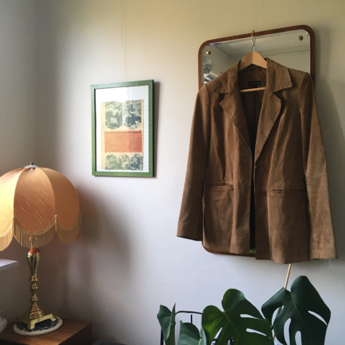 Assnygg oanvänd mockajacka i 70talsstil! Frakt tillkommer om möte i Sthlm ej bestäms.
