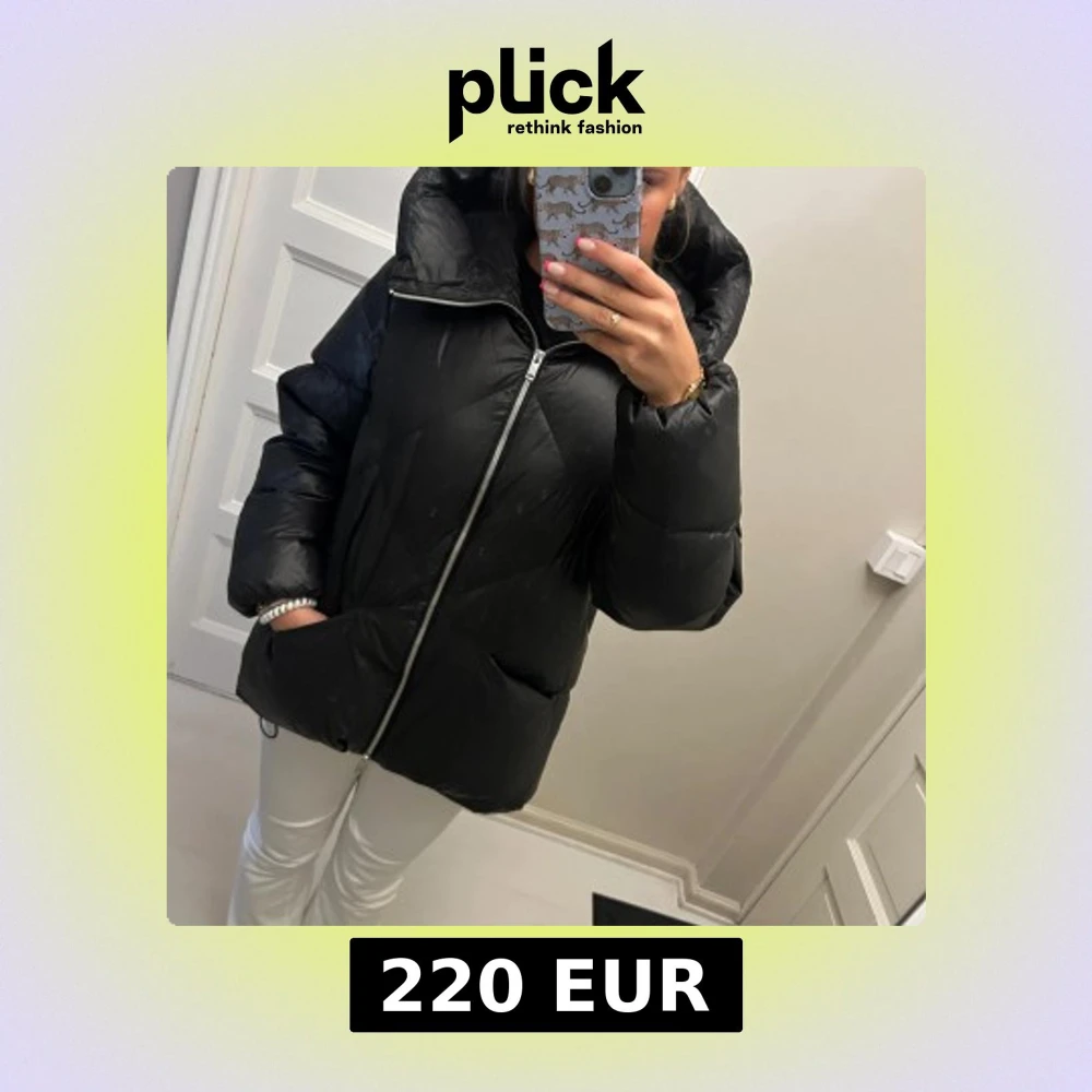 Säljer en svart pufferjacka från Massimo Dutti med stor huva och coolt snedställd dragkedja. Jackan är quiltad och har en oversized vibe, perfekt för kalla dagar. Materialet är glansigt och känns riktigt mjukt och skönt.