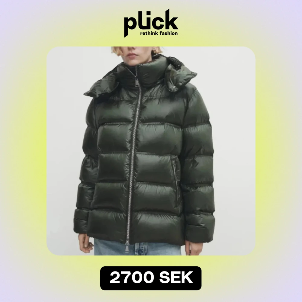 Snygg och varm grön pufferjacka med dragkedja. Perfekt för kyliga dagar med sin vadderade design och höga krage. Säljer pågrund av att jag råkade beställa två. Helt ny med prislapp kvar.