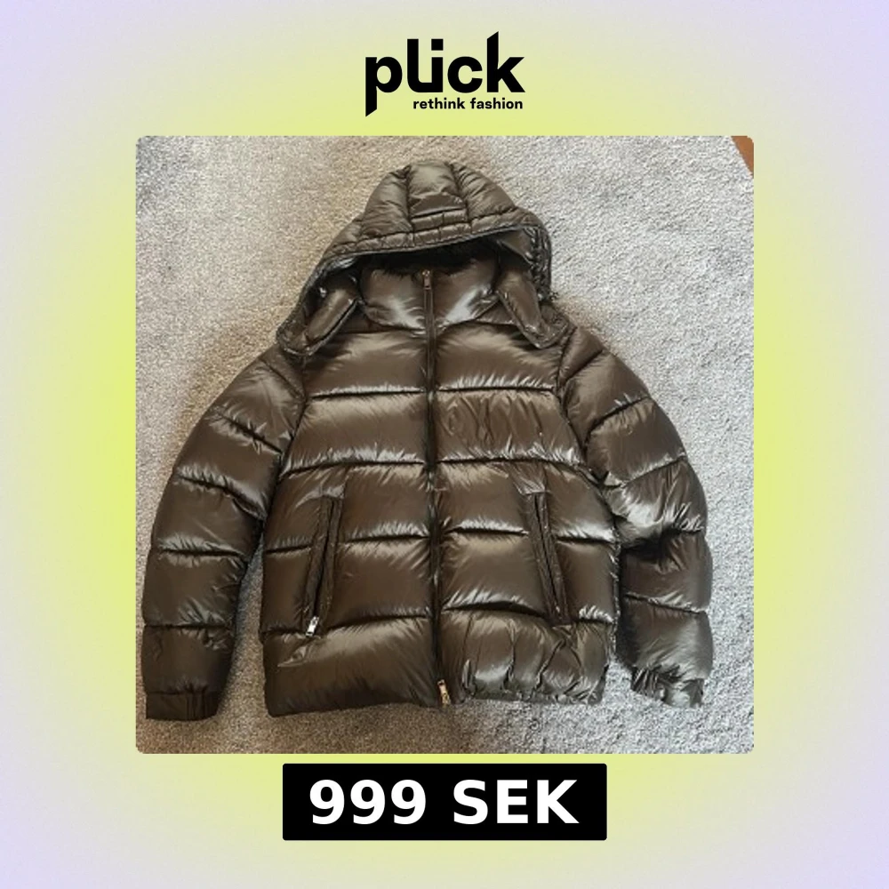 Snygg mörkgrön pufferjacka från Massimo Dutti med huva och två fickor med dragkedja. Jackan har en glansig finish. Den ser lite brun ut på kamera men den är mörkgrön i verkligheten. Nypris: 2000kr