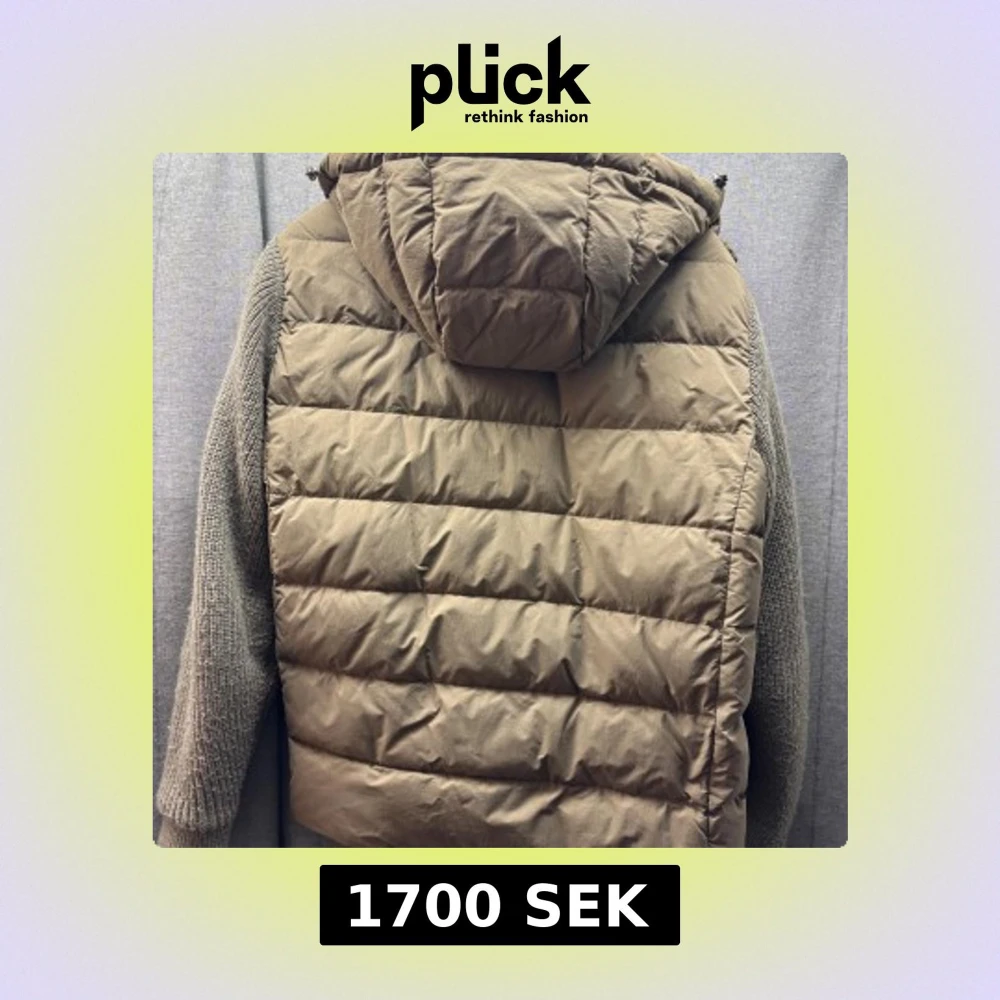 Säljer en beige pufferjacka från Massimo dutti med stickade ärmar och huva. Jackan har quiltad kropp, dragkedja framtill och ribbade muddar. Perfekt för dig som vill ha en chill och snygg look under höst och vinter.