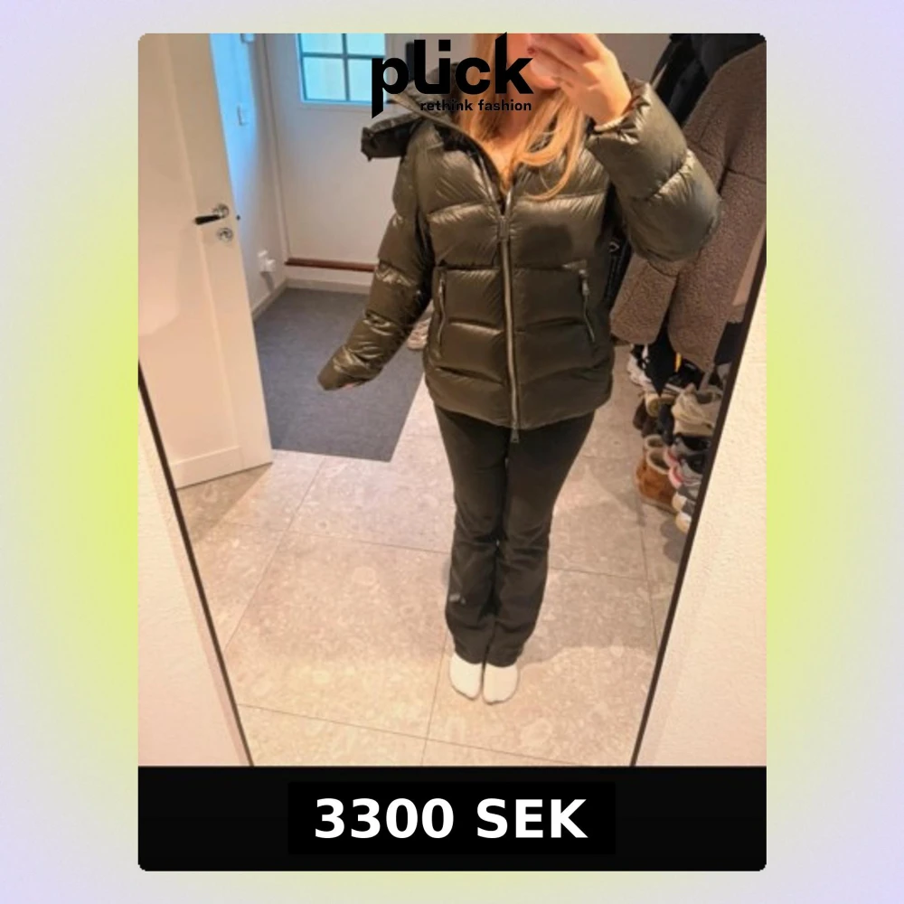 Säljer en mörkgrön pufferjacka med huva och dragkedja framtill från Massimo dutti. Jackan har två sidofickor med dragkedja och en quiltad design som ger en snygg och puffig look. Perfekt för kalla dagar och riktigt skön att bära.
