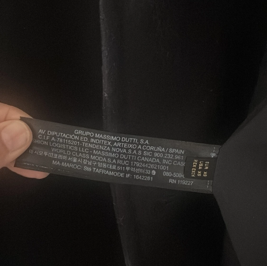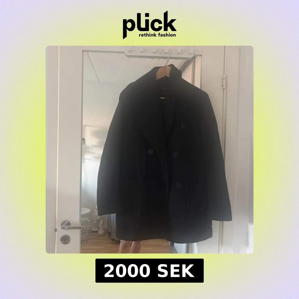 Svart rock från Massimo Dutti i storlek XS, tillverkad av italienskt tyg. Jackan har bred krage, dubbelknäppning med stora svarta knappar och två rymliga fickor framtill. Snygg och klassisk siluett som ger en clean vibe.