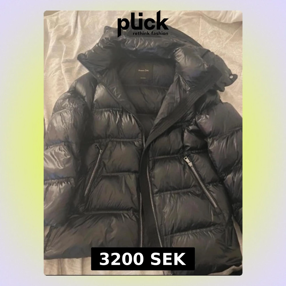 Säljer en svart pufferjacka från Massimo Dutti med glansig finish och stor huva. Jackan har två snedställda fickor med dragkedja och kraftig frontzip. Perfekt för kalla dagar och har en riktigt schysst oversized look.
