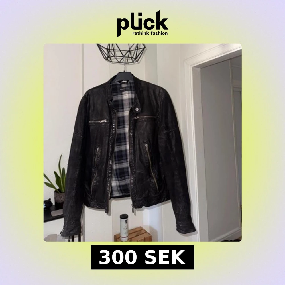 Snygg svart skinnjacka från Rockn Blue med coola dragkedjedetaljer och rutigt innerfoder. Jackan har fyra fickor med dragkedja framtill och en stilren krage med tryckknapp. Perfekt för dig som vill ha en klassisk och edgy look. Använt men inte mkt, fåtal gånger. Önskas mer bilder så är det bara att skriva. OBS FINNS UTE PÅ FLER SIDOR