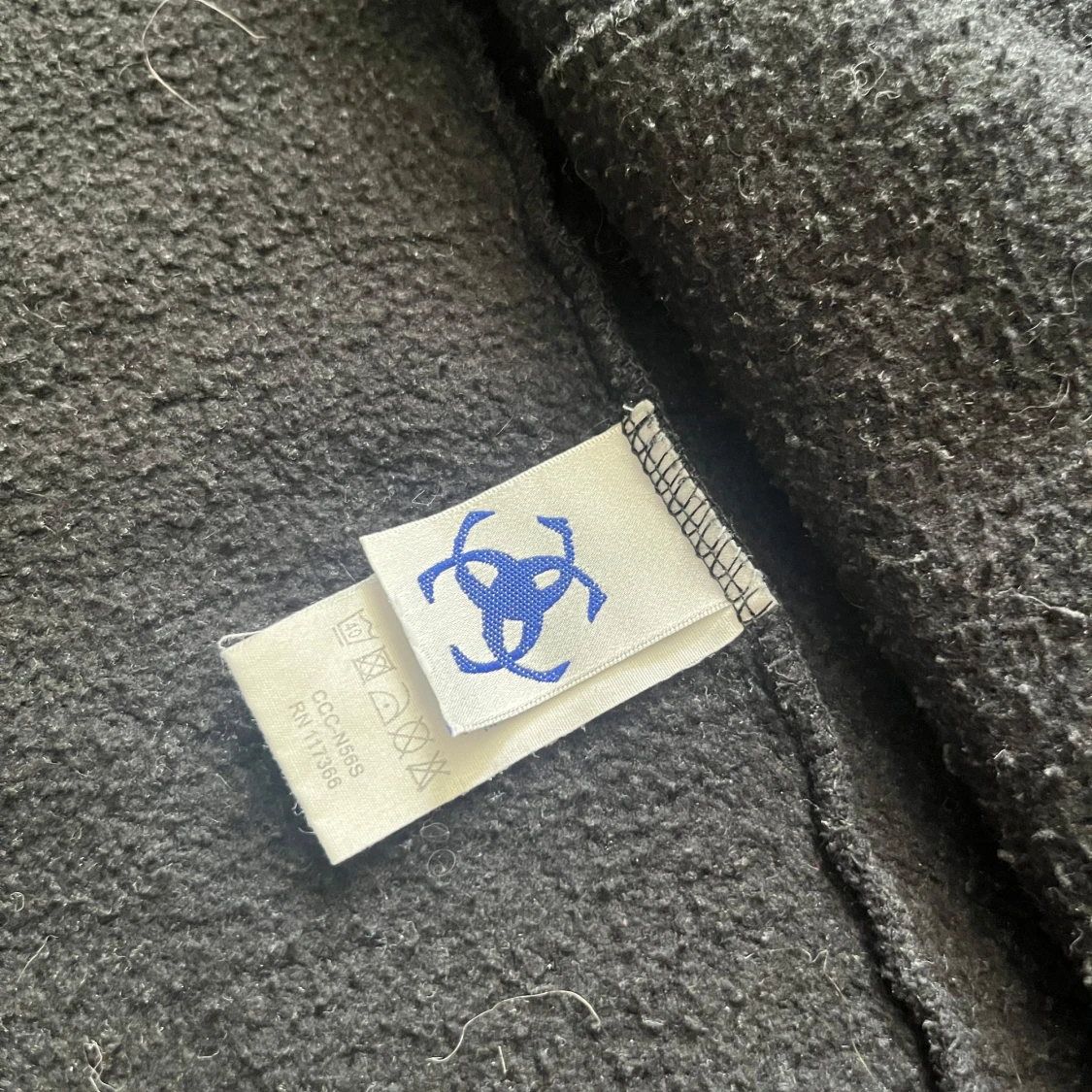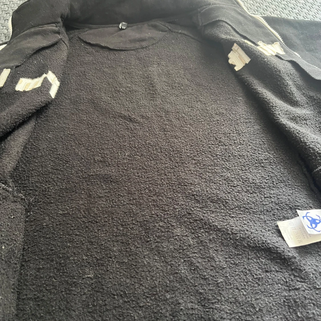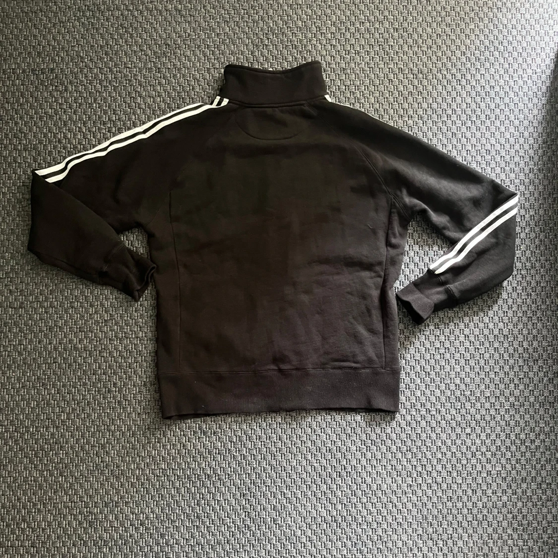 Svart track jacket med vit dragkedja och vita ränder längs ärmarna. Tryck med texten 'i'm lovin' it' på bröstet. Hög krage och två fickor med dragkedja. Tillverkad i bomullsmix, insida i mjuk fleece.