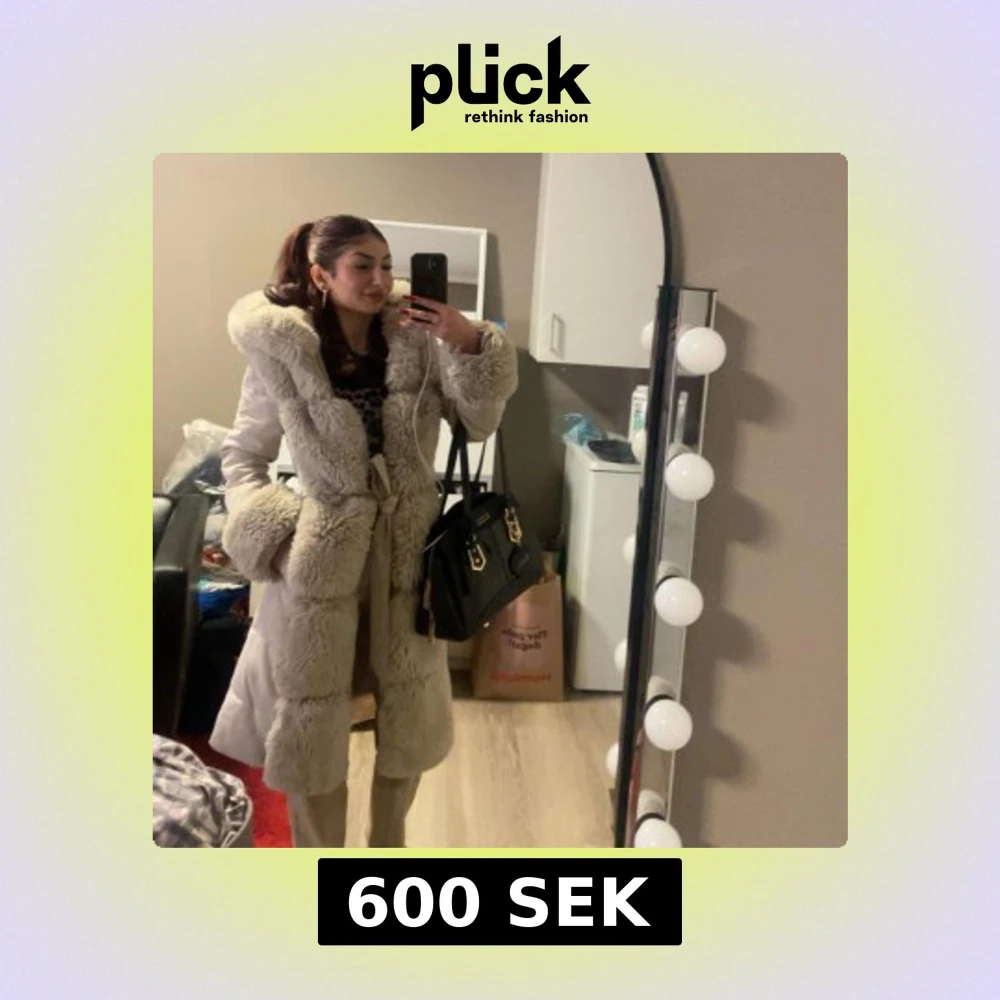 Säljer en supermysig beige pälsjacka med stor huva och fluffiga detaljer. Jackan har en lång passform och stora fickor framtill. Perfekt för att hålla sig varm och stilren under kalla dagar. 🧥✨
