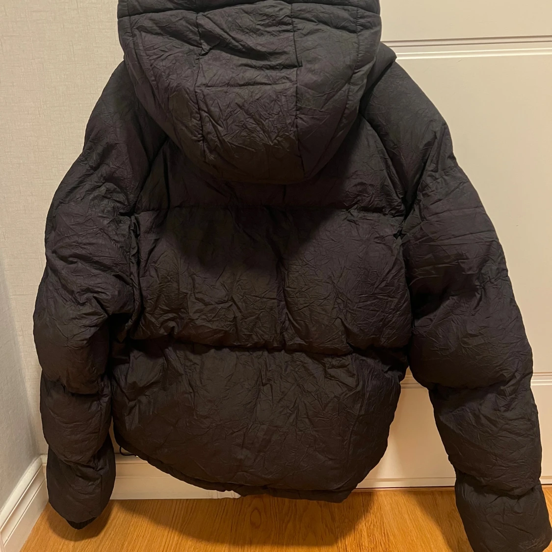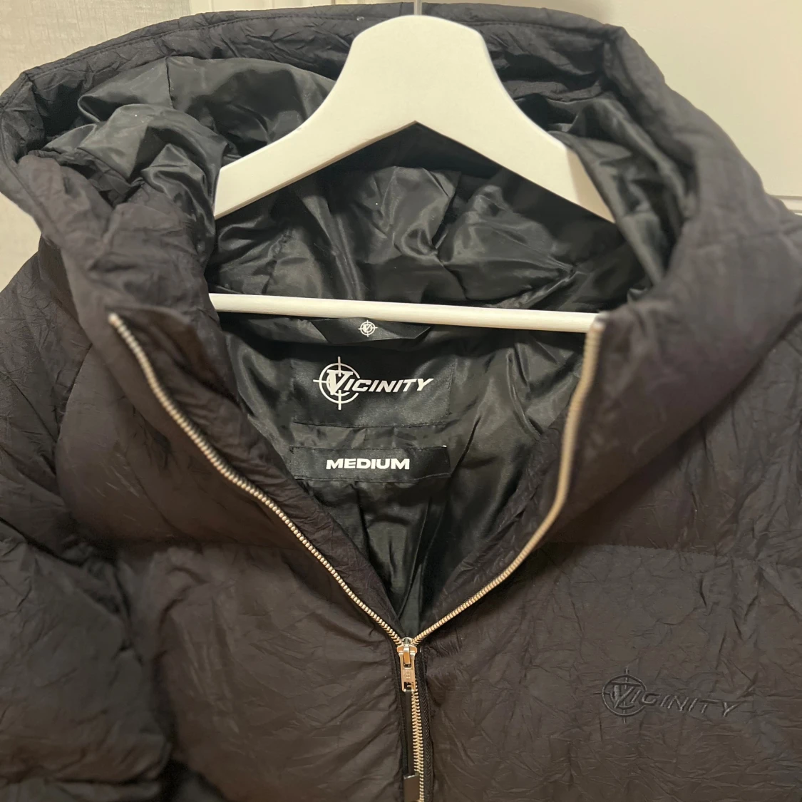 Svart pufferjacka från Vicinity i storlek medium. Jackan har en rejäl huva, grov dragkedja framtill och ett stilrent, quiltat mönster. Materialet är syntet och jackan har en loose passform som ger en cool och avslappnad vibe. Perfekt för kalla dagar och streetwear-stil.