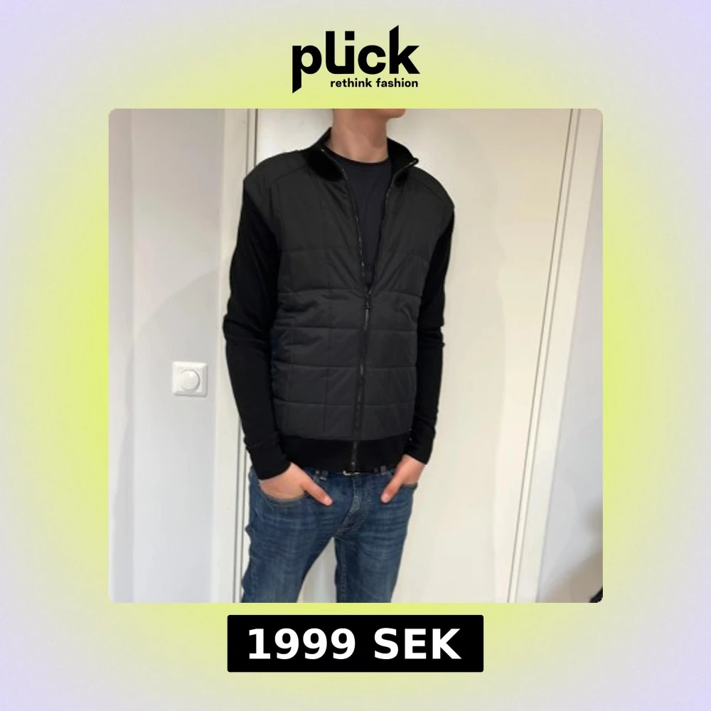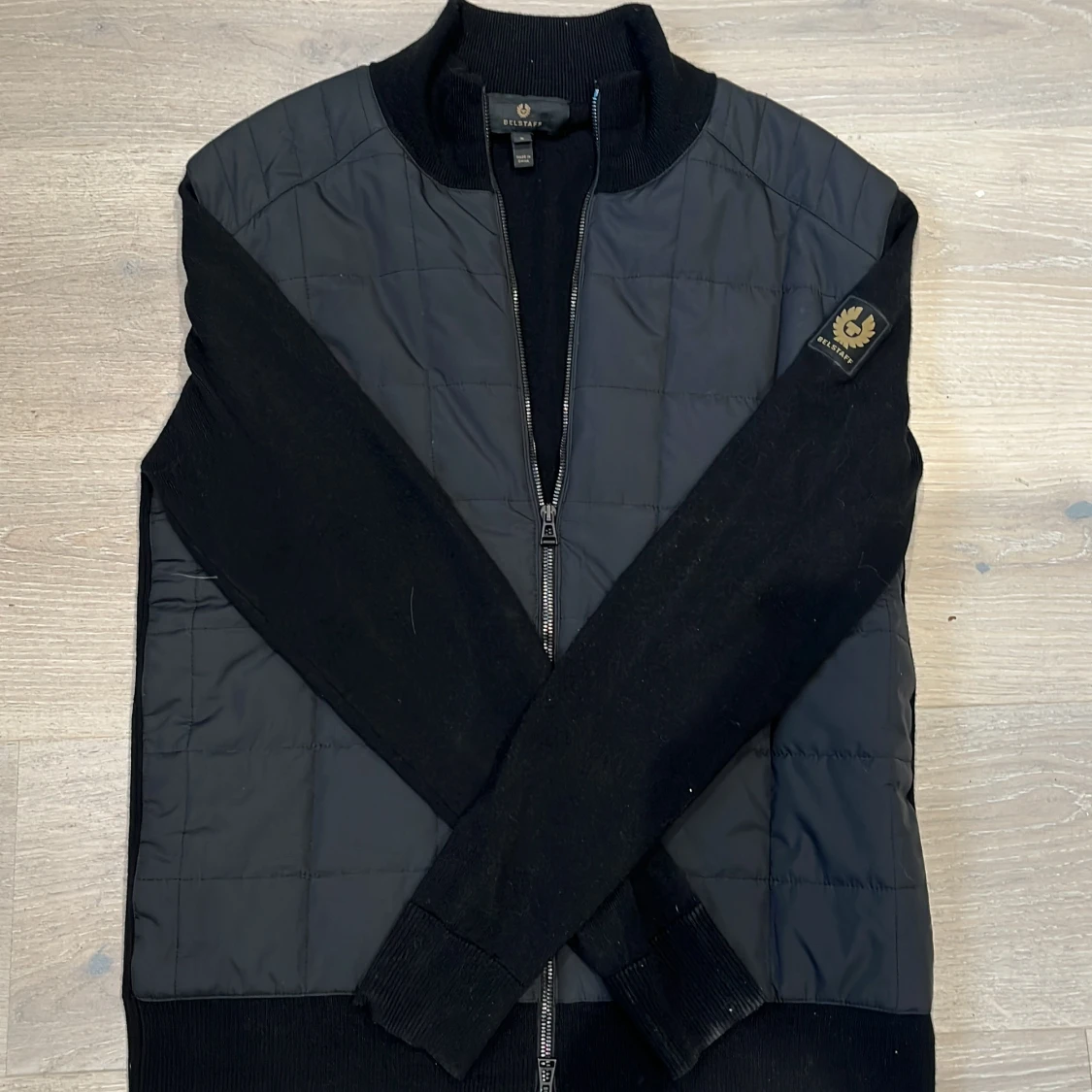 Snygg svart quiltad väst från Belstaff med dragkedja framtill. Västen har en stilren design med ribbade detaljer vid krage och ärmslut. Perfekt för lager-på-lager under kyligare dagar./ Aldirg använd