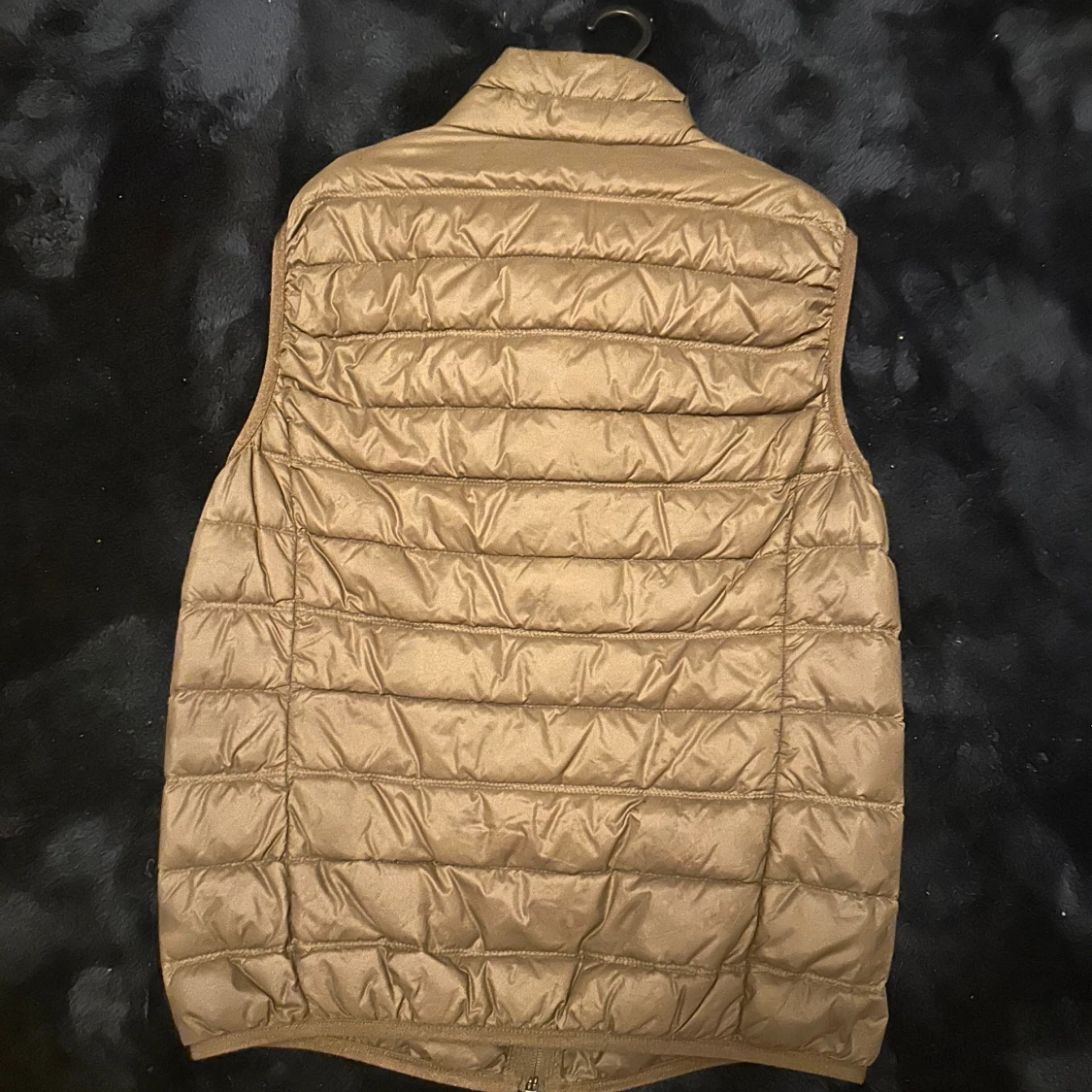Snygg militär grön dunväst från Emporio Armani med quiltad design och dragkedja framtill. Västen har hög krage och logga på bröstet. Perfekt för lager-på-lager och ger en clean look till din outfit.