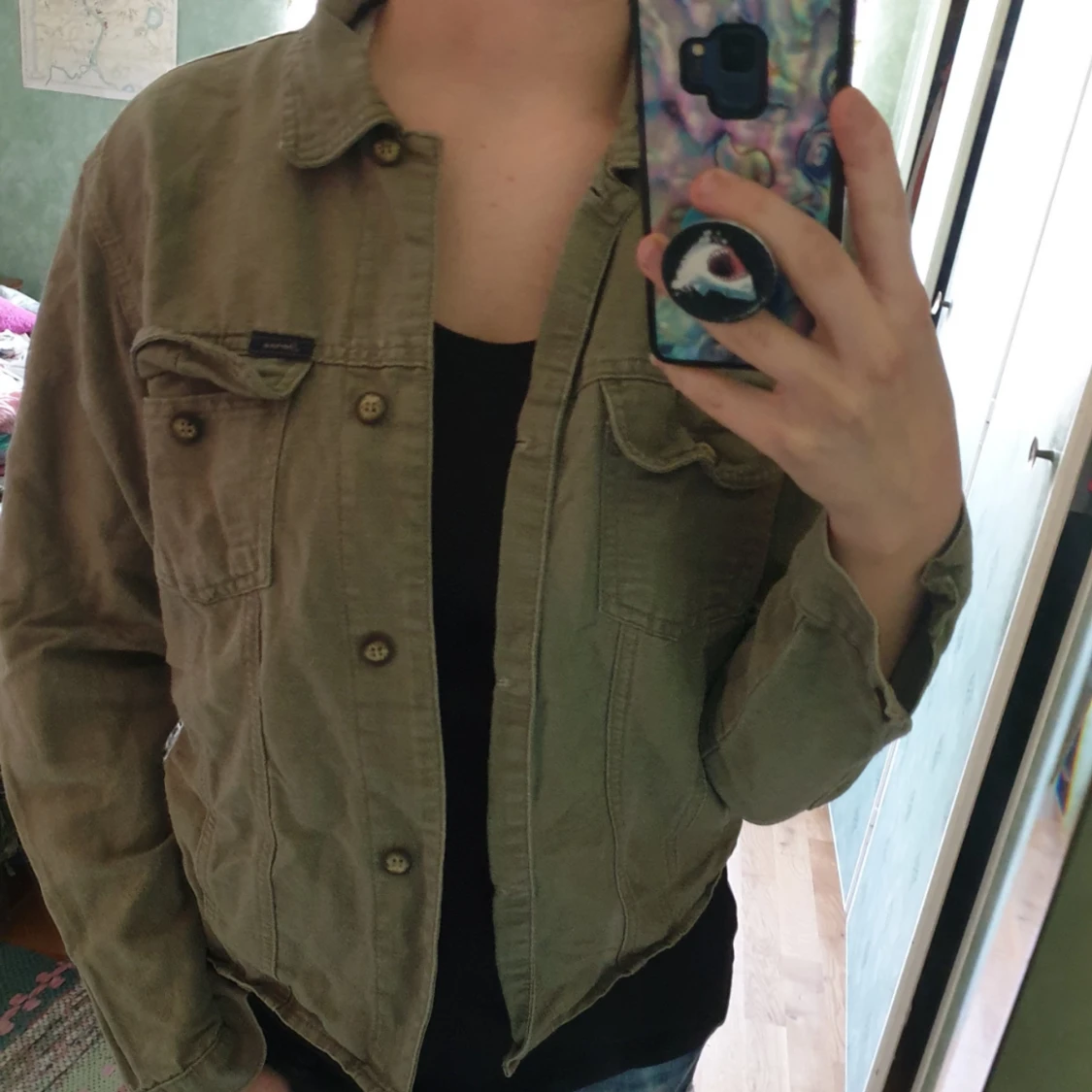Vårjacka som är lite av den kortare men bredare modellen, saknas en knapp på en av ärmarna annars i bra skick. Kommer inte ihåg var den kommer ifrån antagligen hand-me-down, aldrig använd av mig och annars i bra skick. Priset går att diskutera, frakt ingår inte i priset.