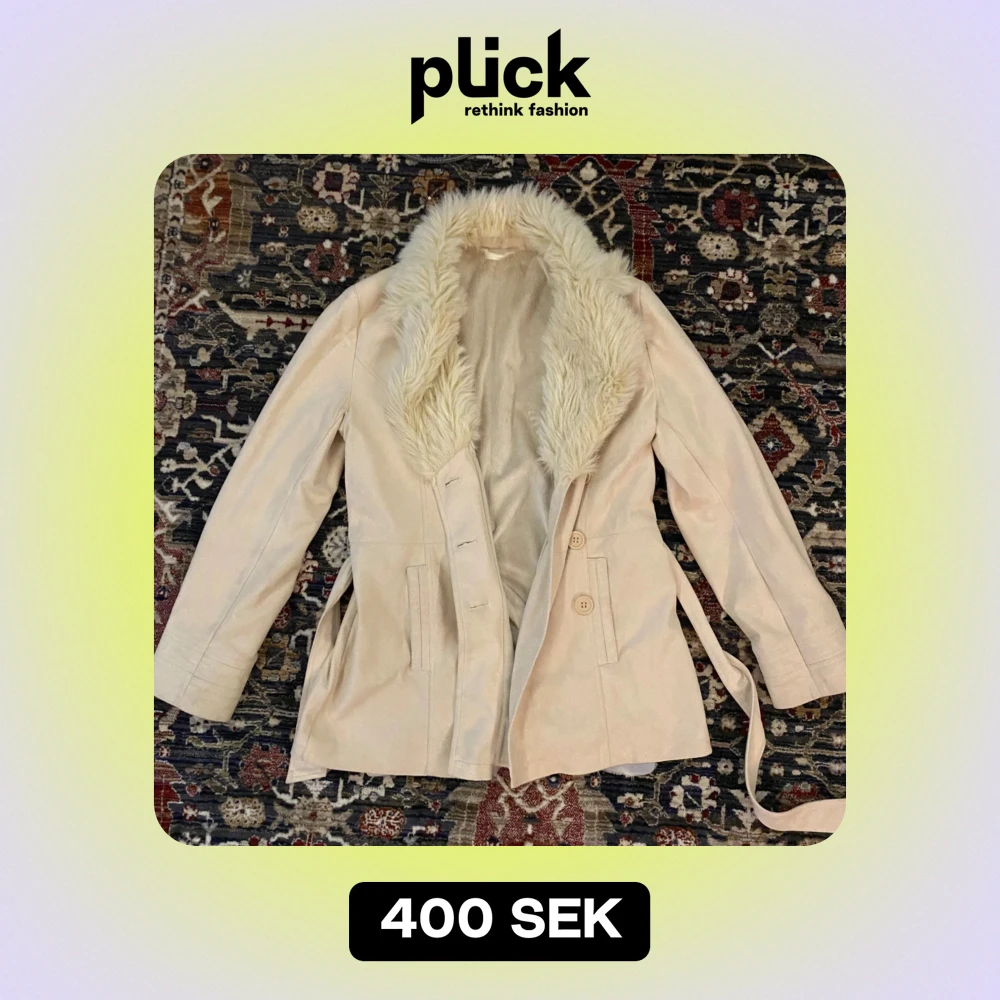 Säljer en snygg beige mockajacka med fuskpäls på kragen. Jackan har långa ärmar och knäpps med knappar framtill. Den har också ett bälte i midjan för en mer figurnära passform. Perfekt för höst och vinter! Den har mysigt tyg på insidan som är skönt 🤍 Längst ner på kappan har insidans tyg lossnat lite, syns på sista bilden, men det går enkelt att fixa med nål och tråd!
