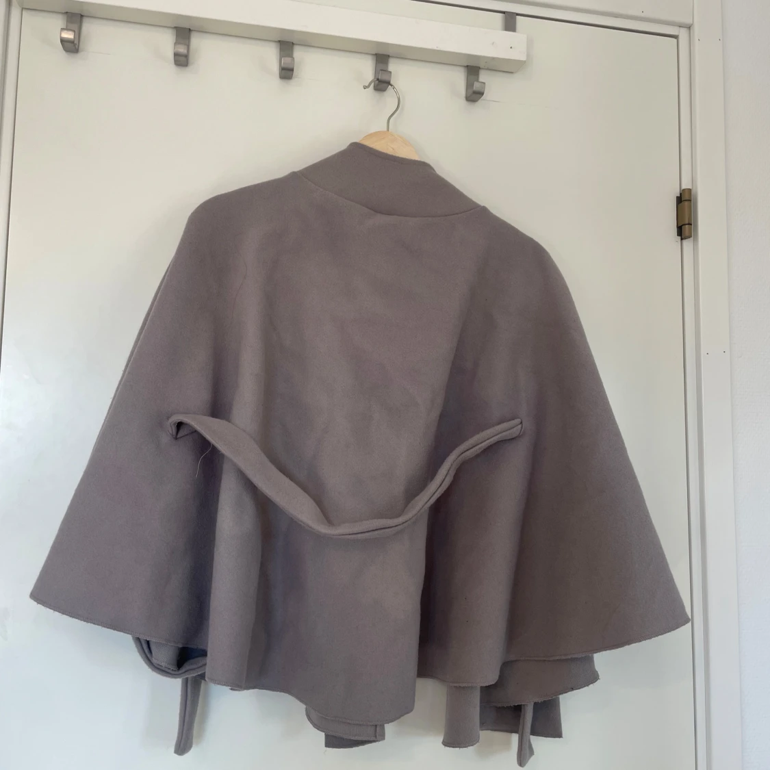 Missäy poncho/kappa i grå. Är lite nopprig och skrynklig.
