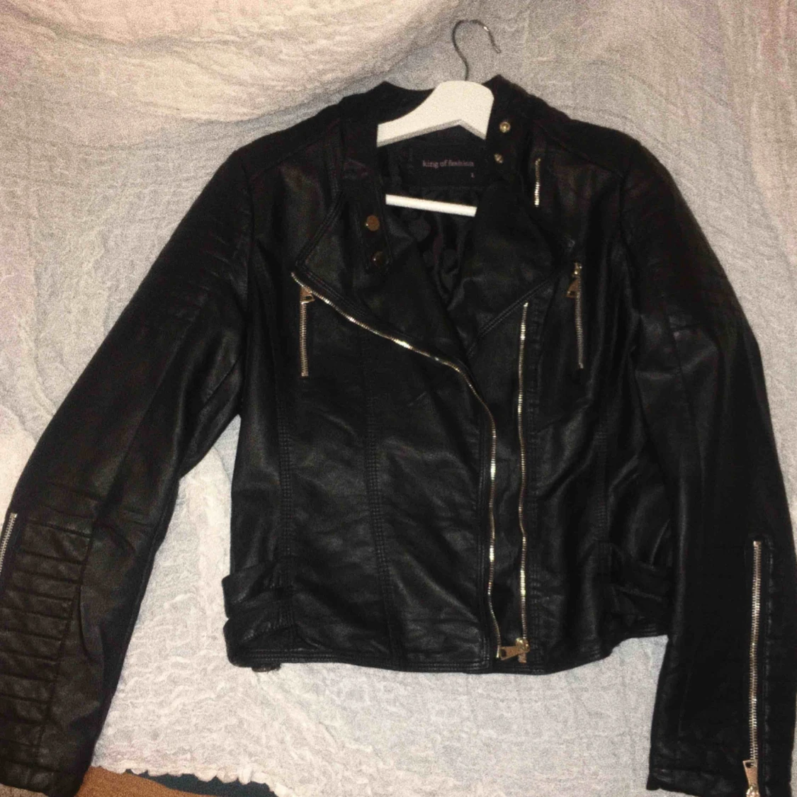 Snygg skinnjacka från missay. Liten i storleken skulle jag säga, aldrig använd så den är helt som ny🧡