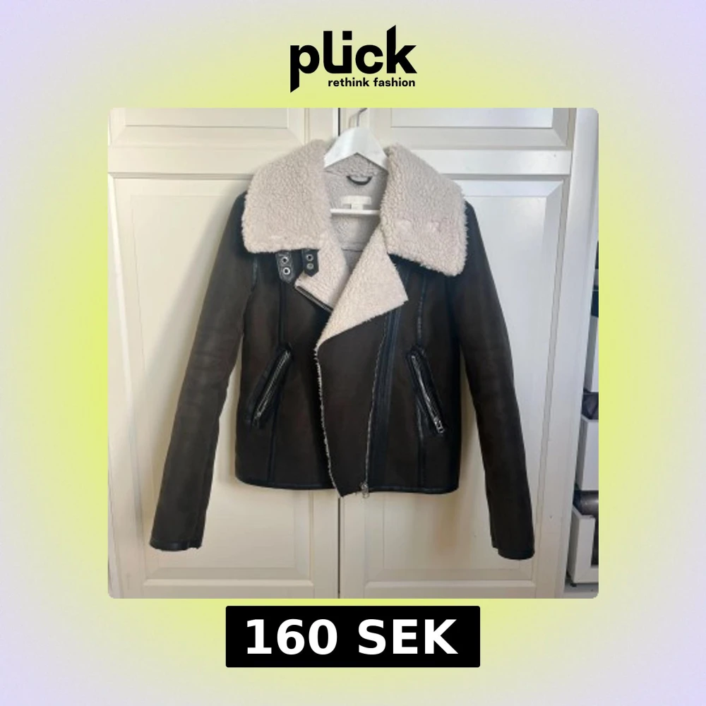 Säljer en olivgrön jacka i imitationsmocka från hm. Den är olivgrön/brun beroende på ljus, går att stänga i kragen och är knappt använd!