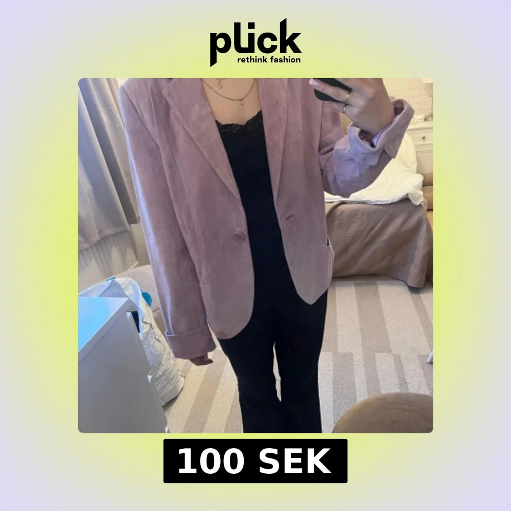Säljer en ljuslila kavaj i äkta mocka.Kavajen har klassisk krage, en knapp framtill och är helfodrad med glansigt lila polyestersatin. Perfekt för dig som vill sticka ut med en färgglad och stilren look. Det finn mindre fläckar, har inte försökt ta bort så vet ej om de går