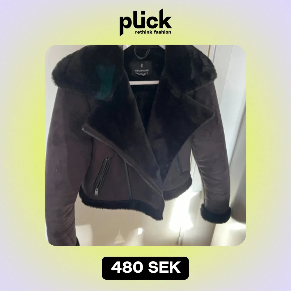 En jätte fin mocka jacka i storlek S. Den håller värme och funkar till många plag. Den är från Stradivarius och är i ett bra skick. Bara använd några få gånger då den har blivit för liten för mig.