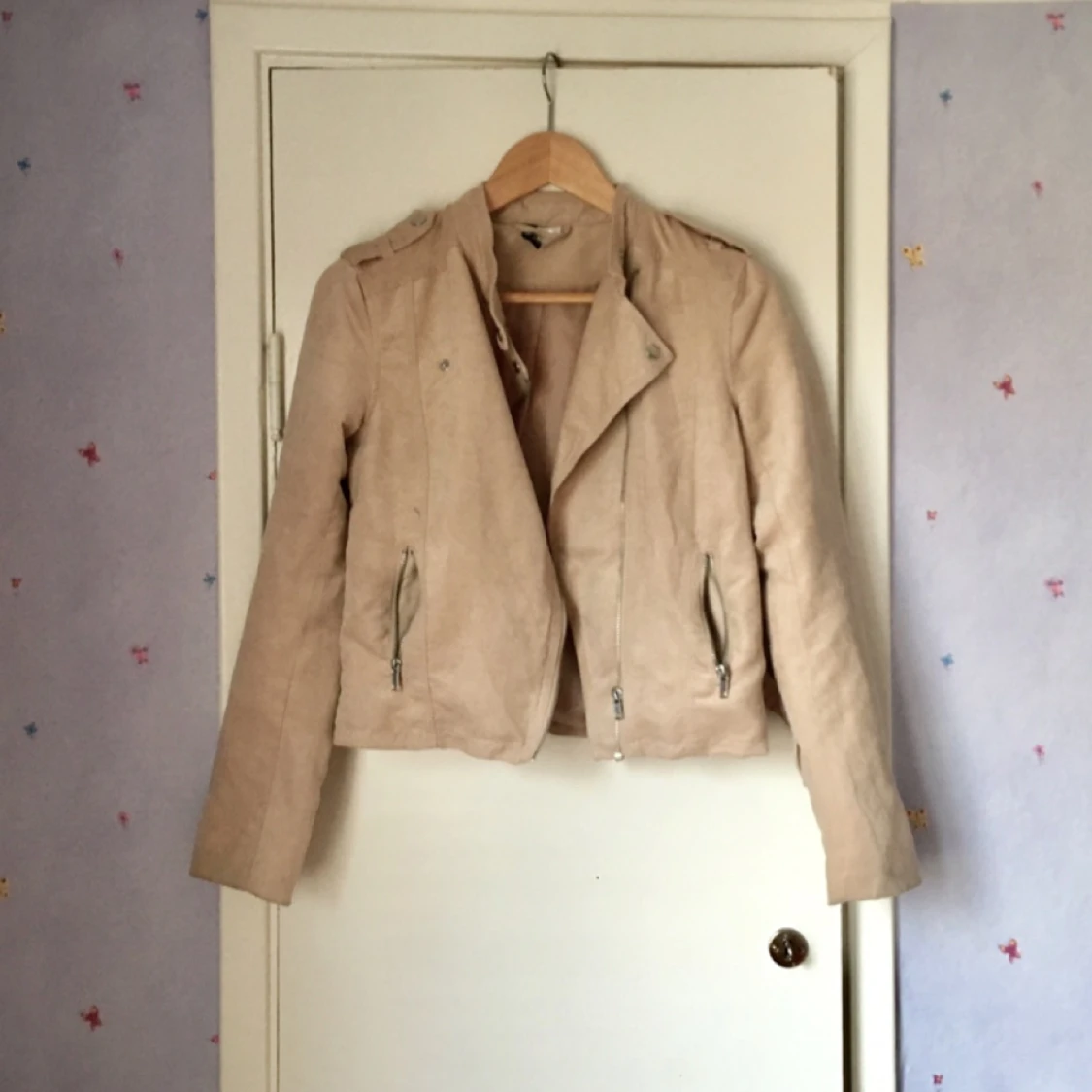 Beige (faux) mocka jacka. Använd ett fåtal tillfällen. Passar 34-38.