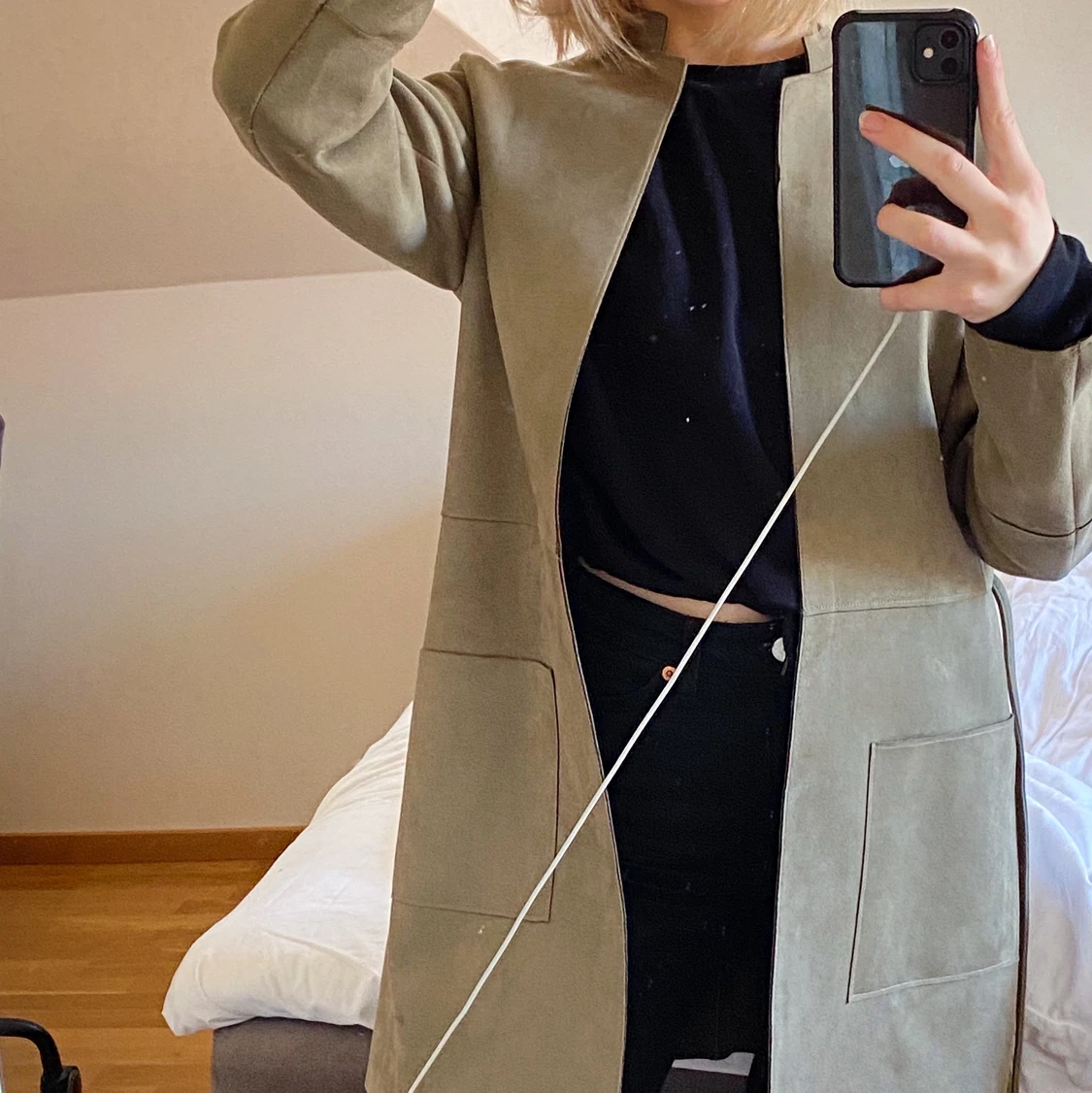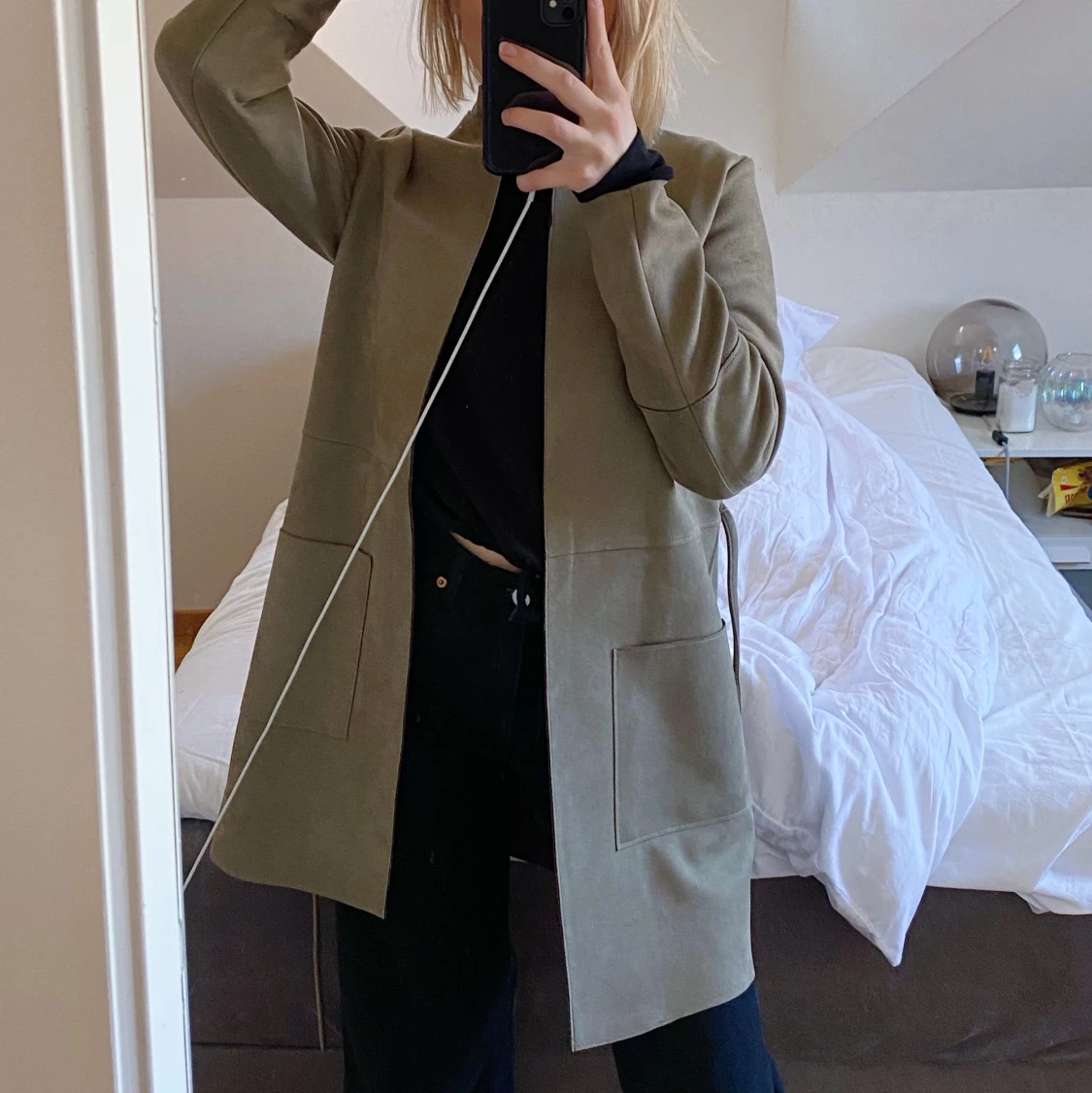 En grön tunn jacka i mockaimitation. Använd ett fåtal gånger, bra skick