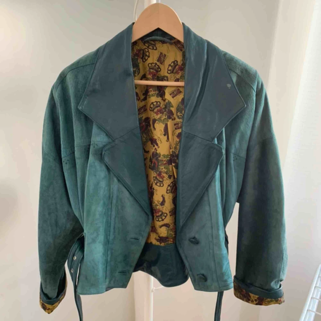Så snygg mockajacka inköpt i Lissabon. Är grön/blå/turkos/petrol. äkta mocka Liten avskavd fläck på ena kragen